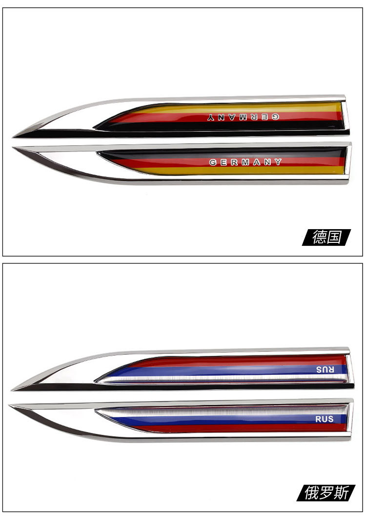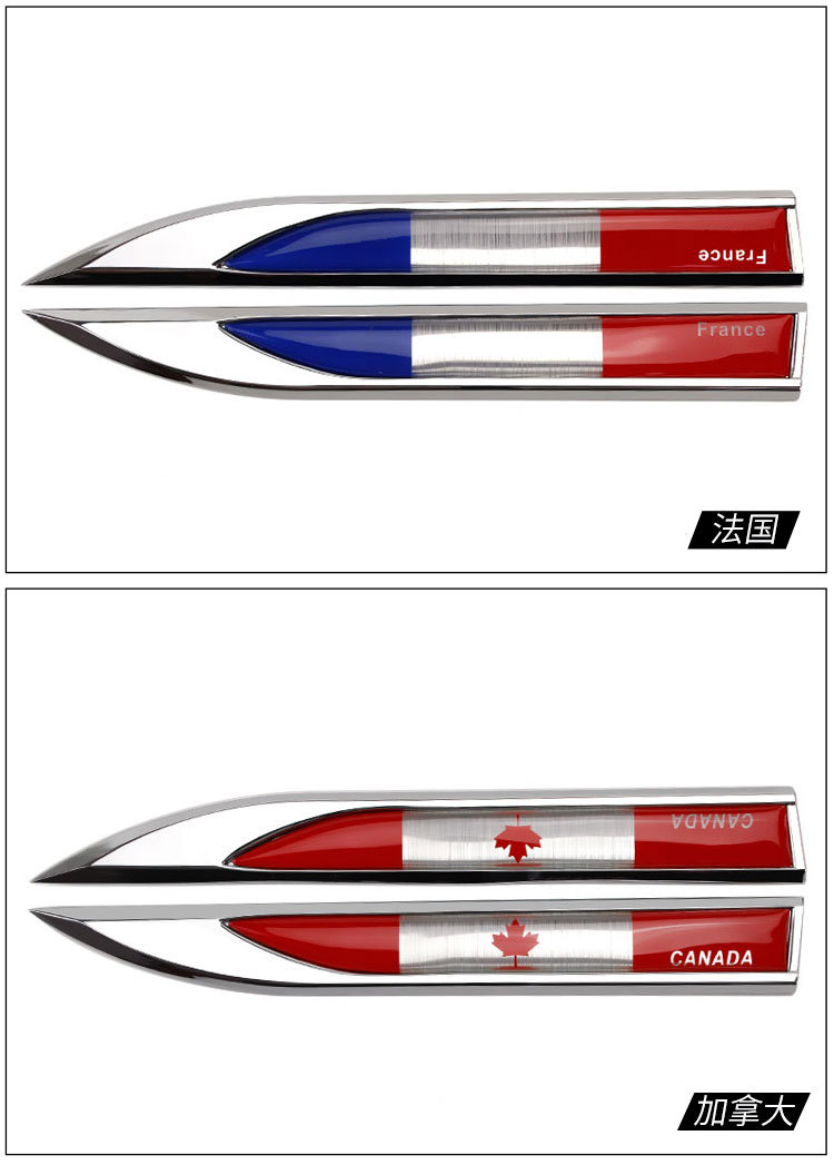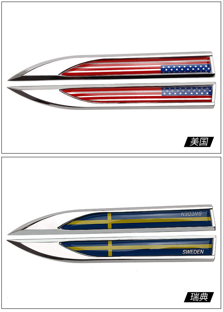 Decorative Car Fender Blade Flag Sticker Emblems for Germany, France, UK, Italy, USA, China, Sweden