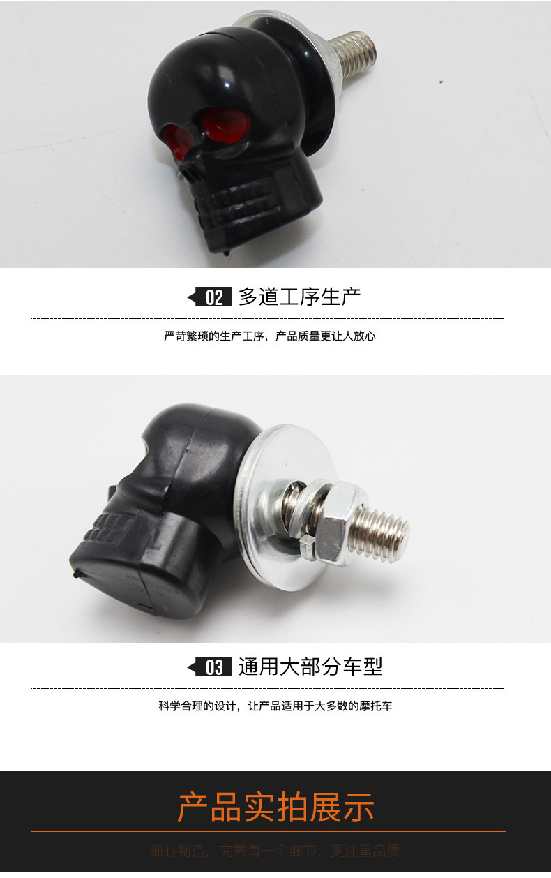 - Eye-Catching Design: Featuring a unique skull head motif, these license plate bolts add a distinctive and edgy aesthetic to your vehicle, making it stand out with a personalized touch.