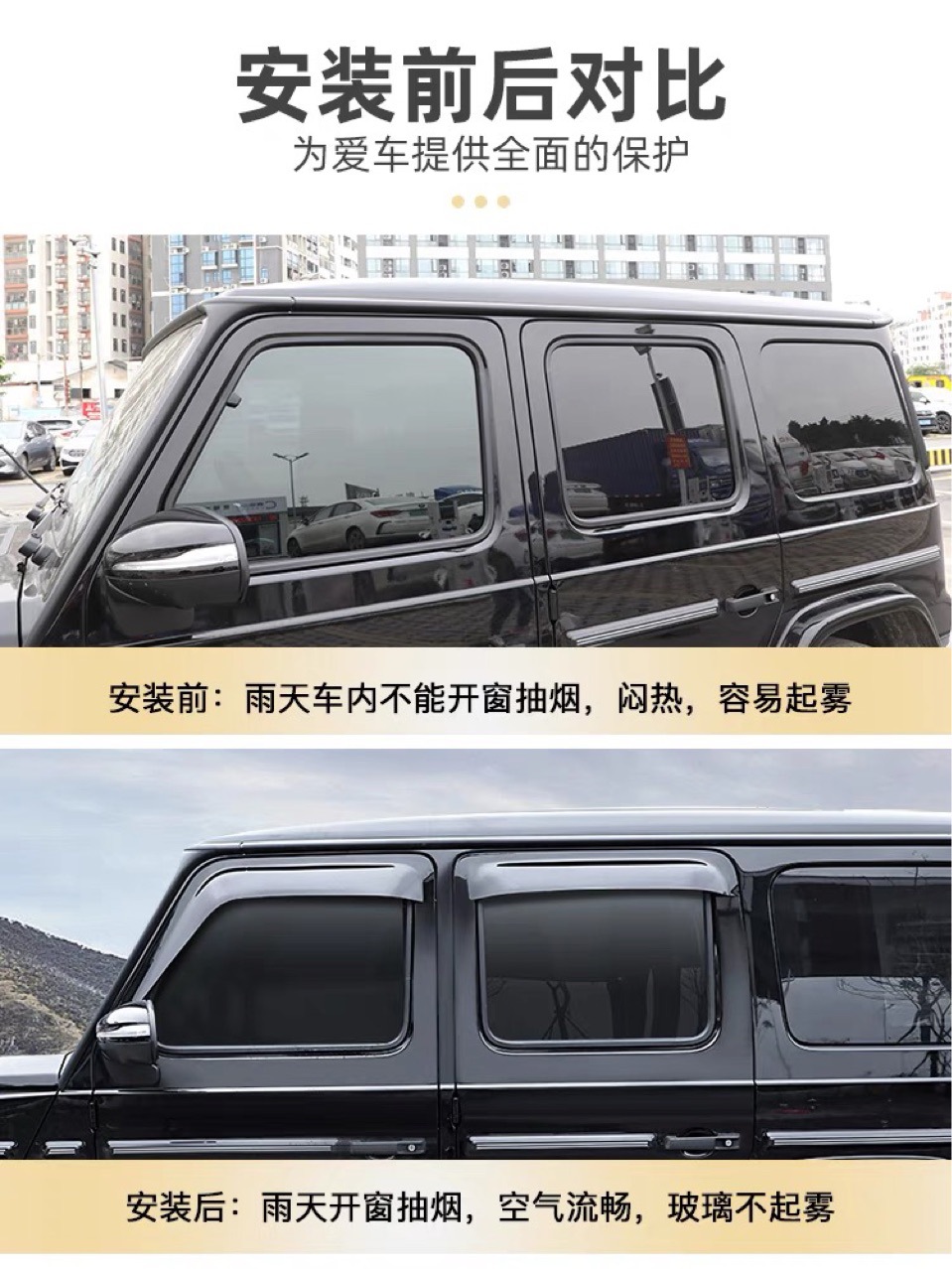 - Package Content: Includes a complete set of 4pcs window rain guards (front and rear), providing full coverage and immediate upgrade for your G-Class vehicle.