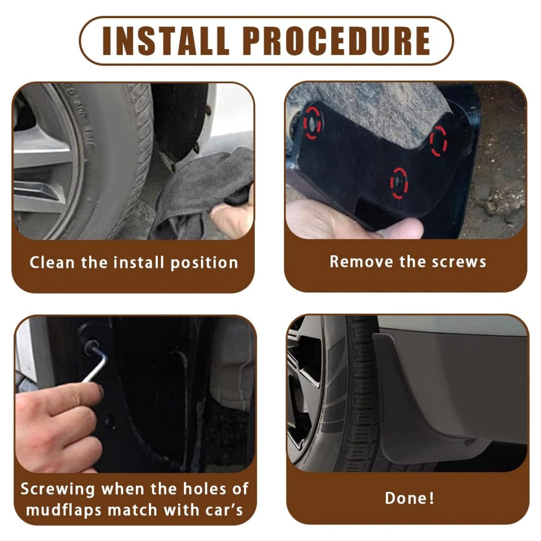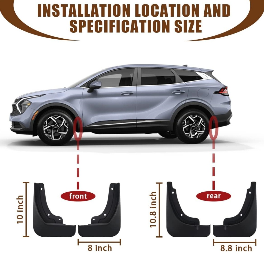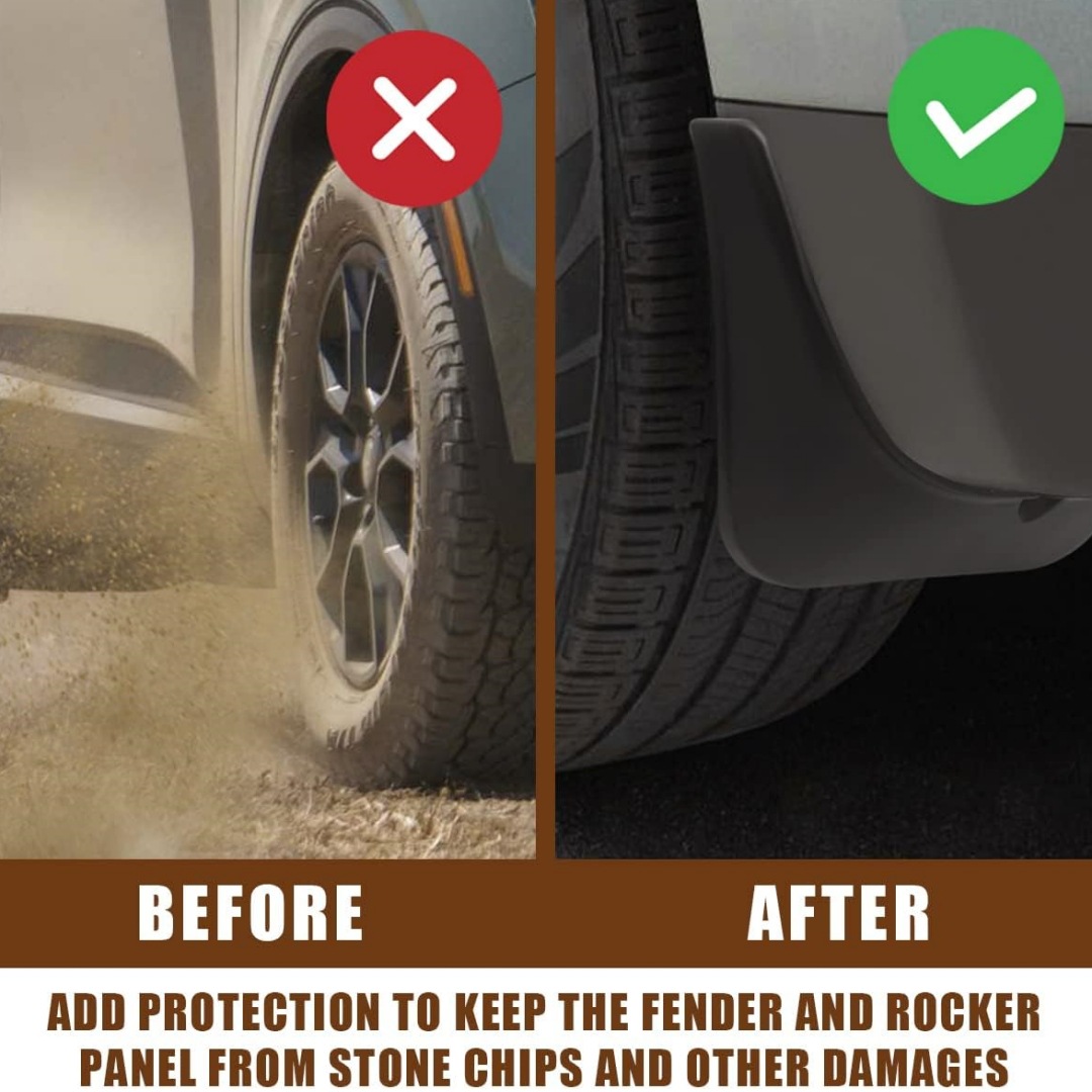 - Comprehensive Protection Kit: Each package includes a complete set of mud flaps for front and rear wheels, providing all-around protection for your vehicle’s undercarriage and side panels, helping to maintain its pristine condition.