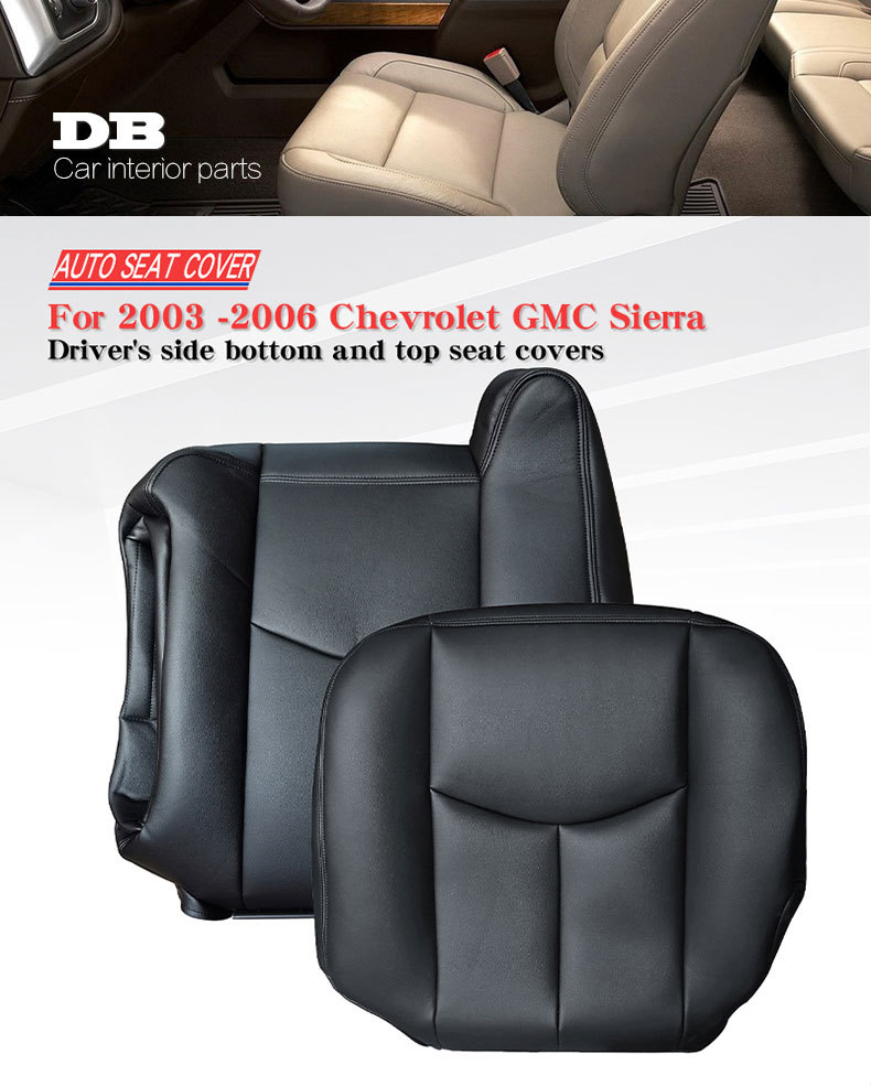 Driver Side Seat Cover Replacement for 2003-2006 Silverado Front Left Bottom and Backrest Black Leather
