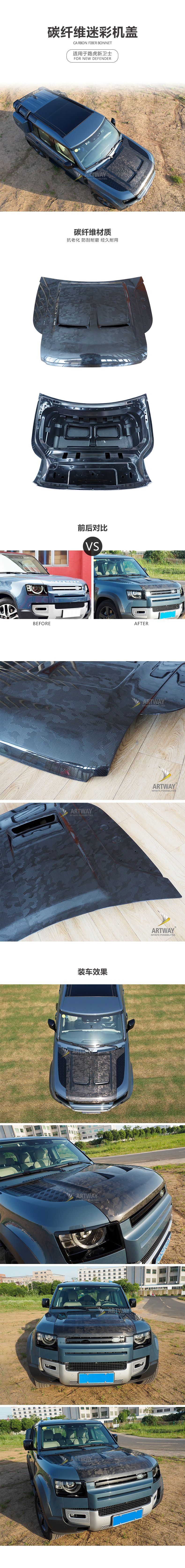 Dry Carbon Fiber Hood Cover Replacement for Land Rover Defender 110