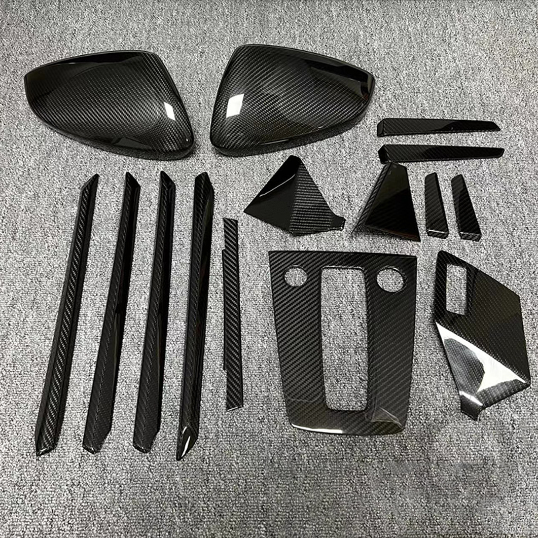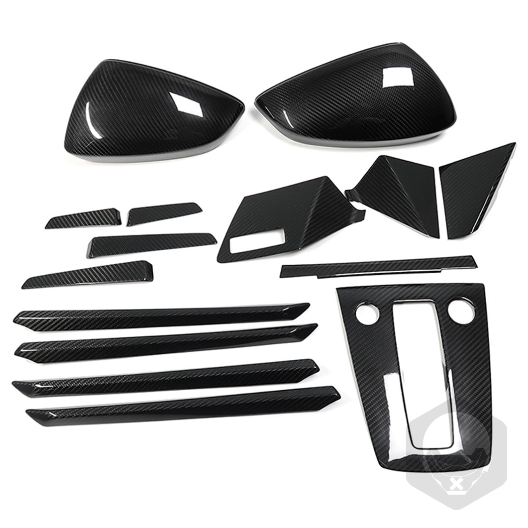 - Complete Kit: This comprehensive package includes a full set of interior and exterior carbon fiber trim pieces, providing a cohesive and striking visual transformation.