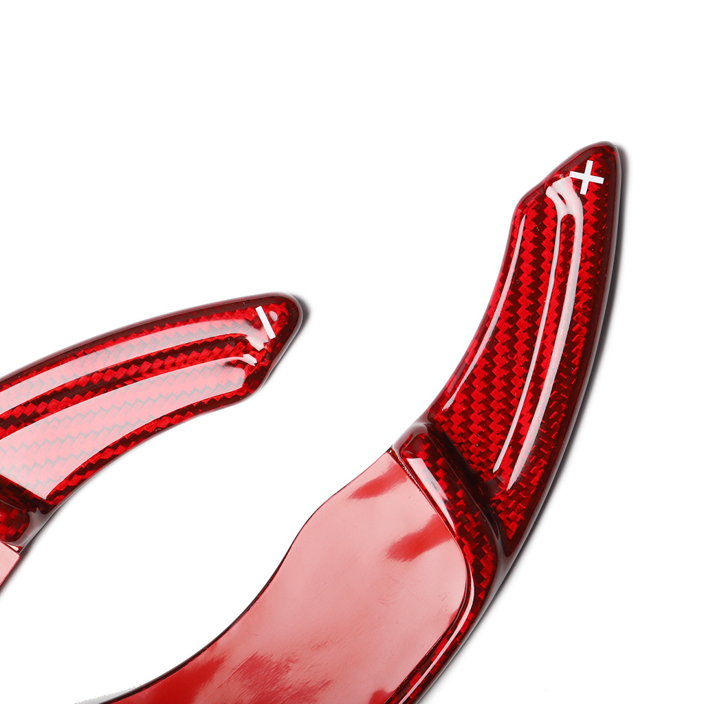 - Package Includes: Each set contains 2 pieces of dry carbon fiber red steering wheel paddle shifter trim, providing a complete solution to personalize and protect your vehicle’s interior.