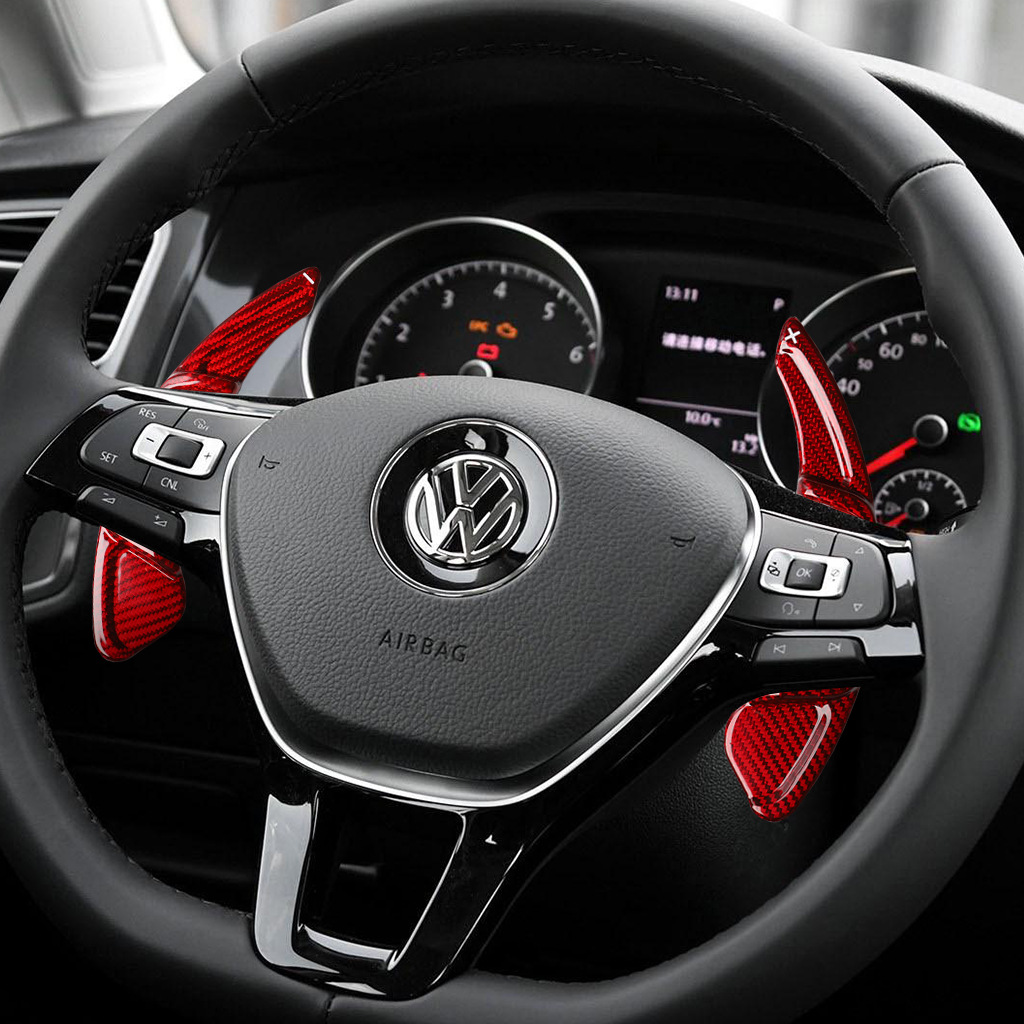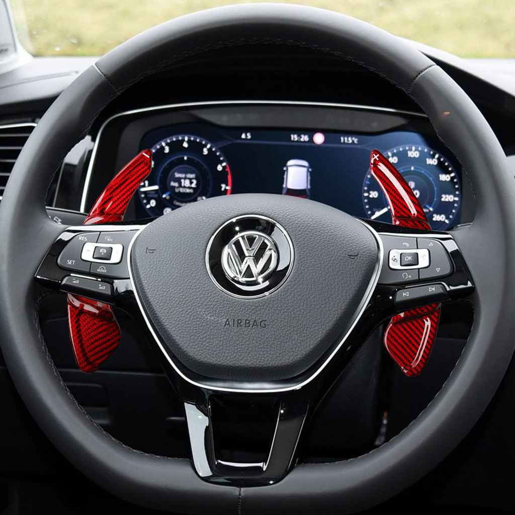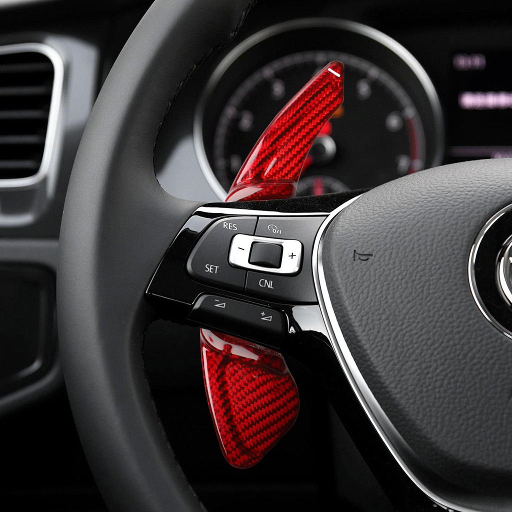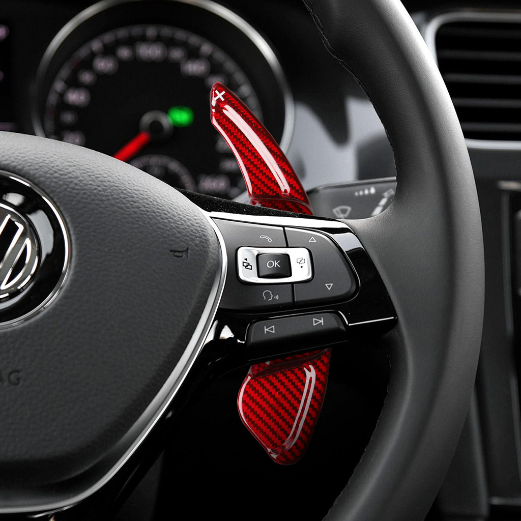 Dry Carbon Fiber Red Steering Wheel Paddle Shifter Trim for Golf 7 (2015-2019)