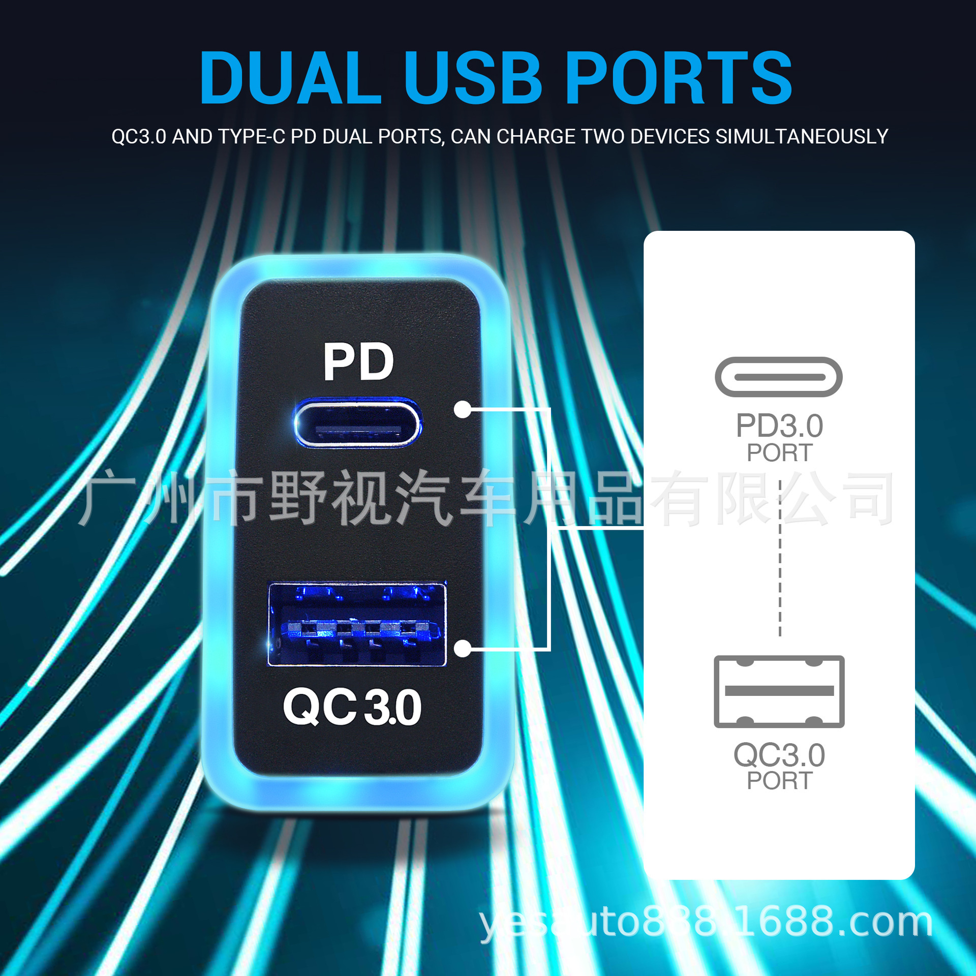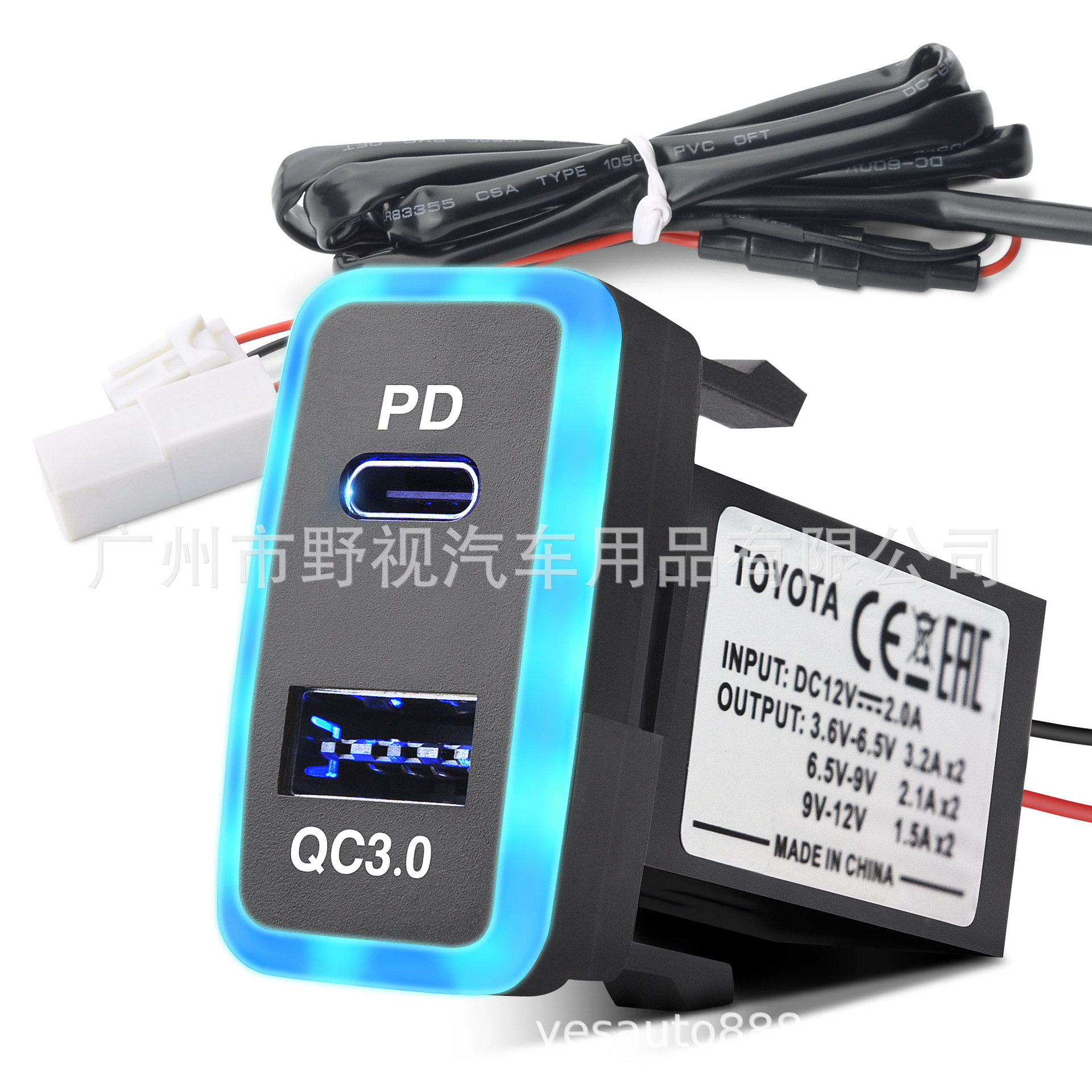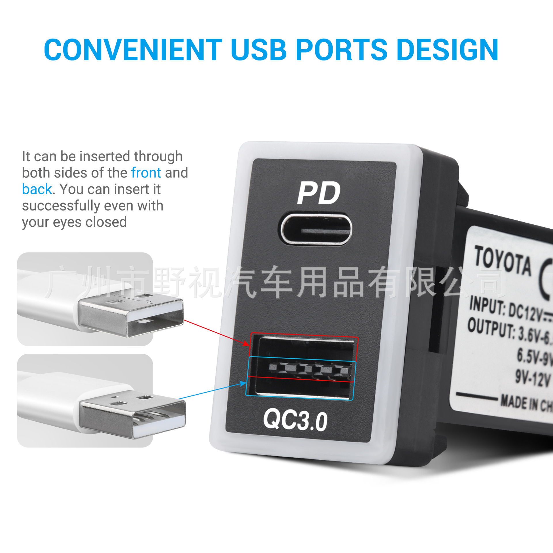 Dual Port Car Charger – USB-C PD3.0 & USB-A QC3.0, 60W Super Fast Charging with Blue Light Guide – for Toyota (New & Old Models)