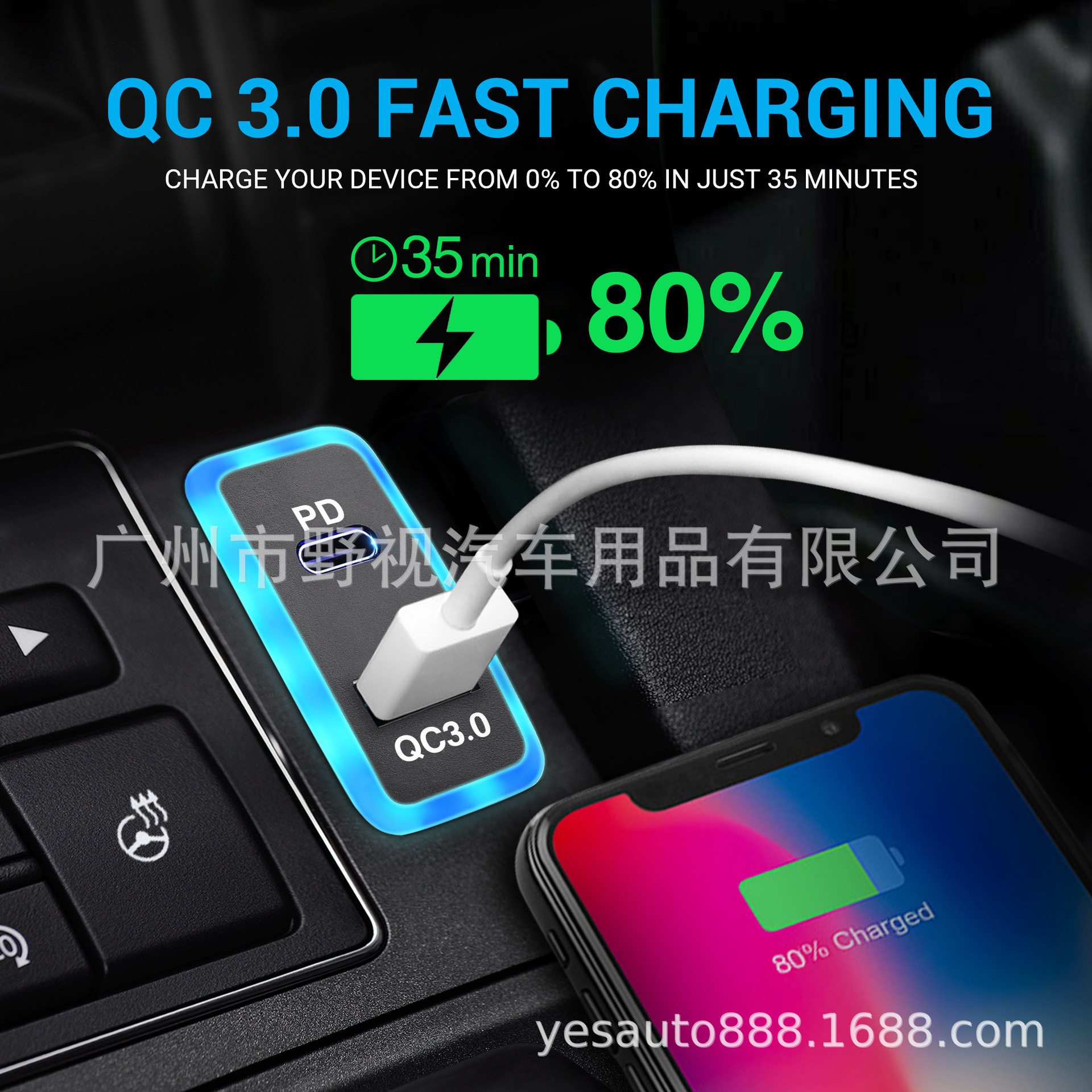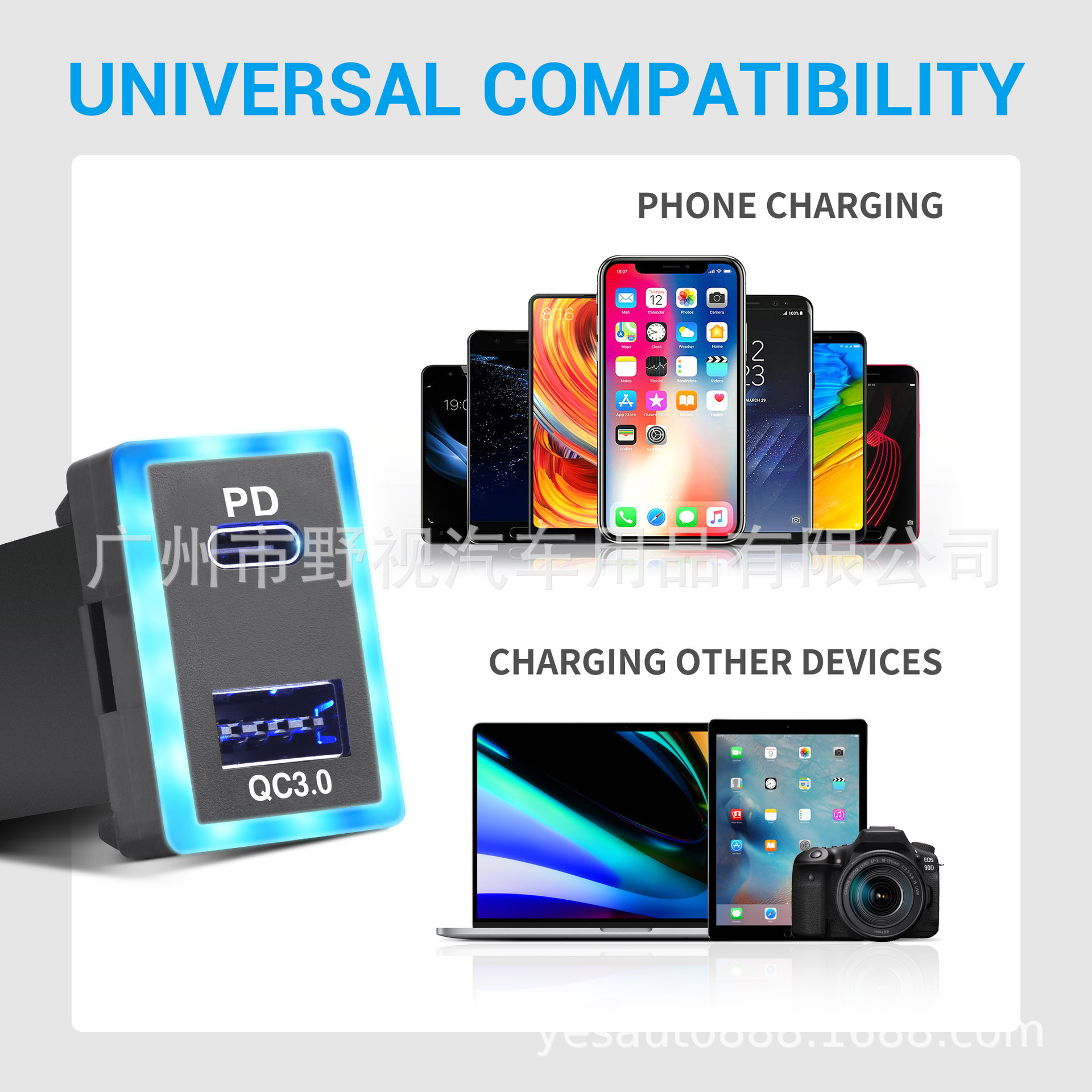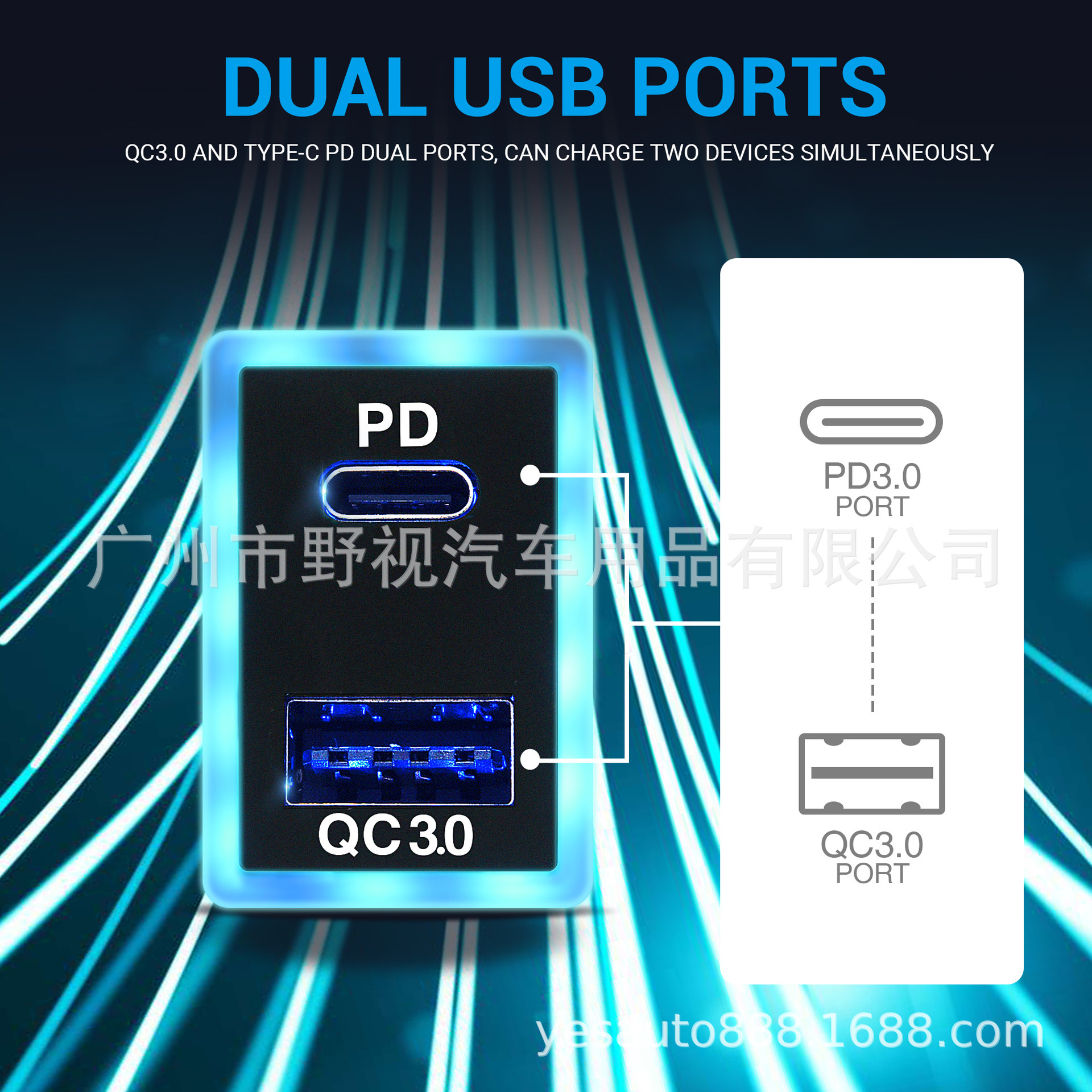 Dual Port Car Charger – USB-C PD3.0 & USB-A QC3.0, 60W Super Fast Charging with Blue Light Guide – for Toyota (New & Old Models)