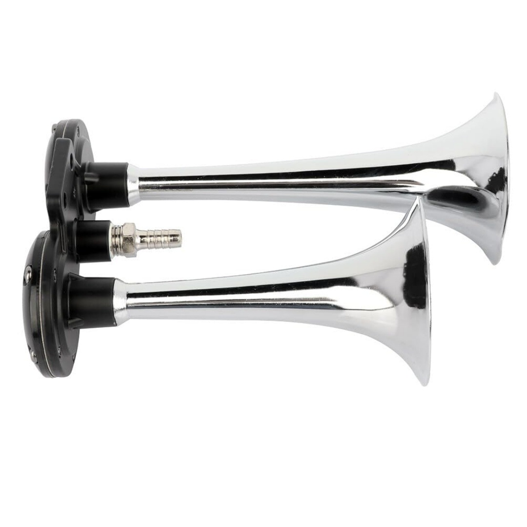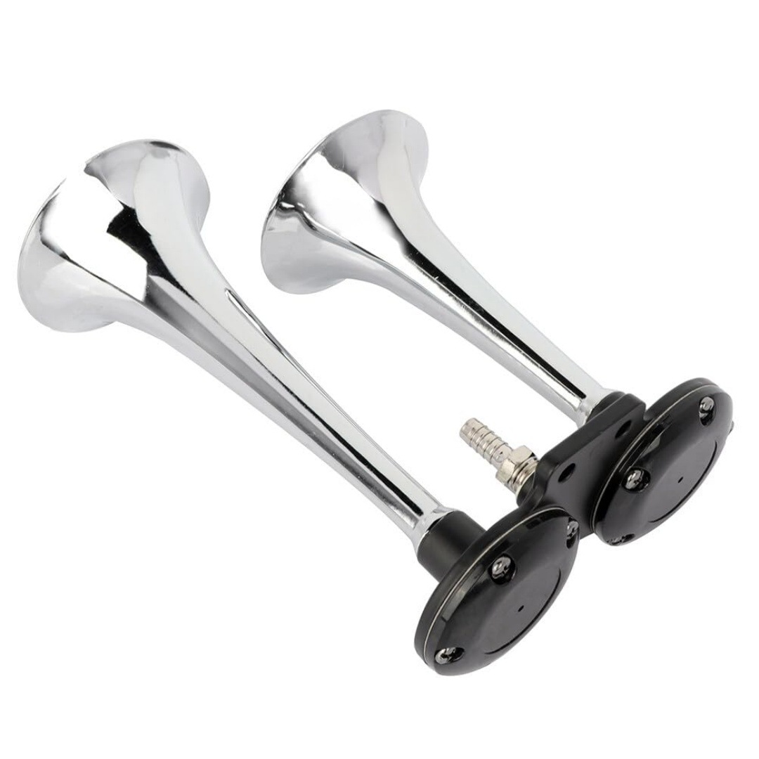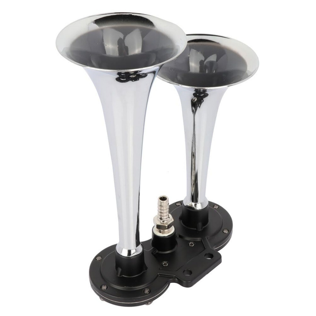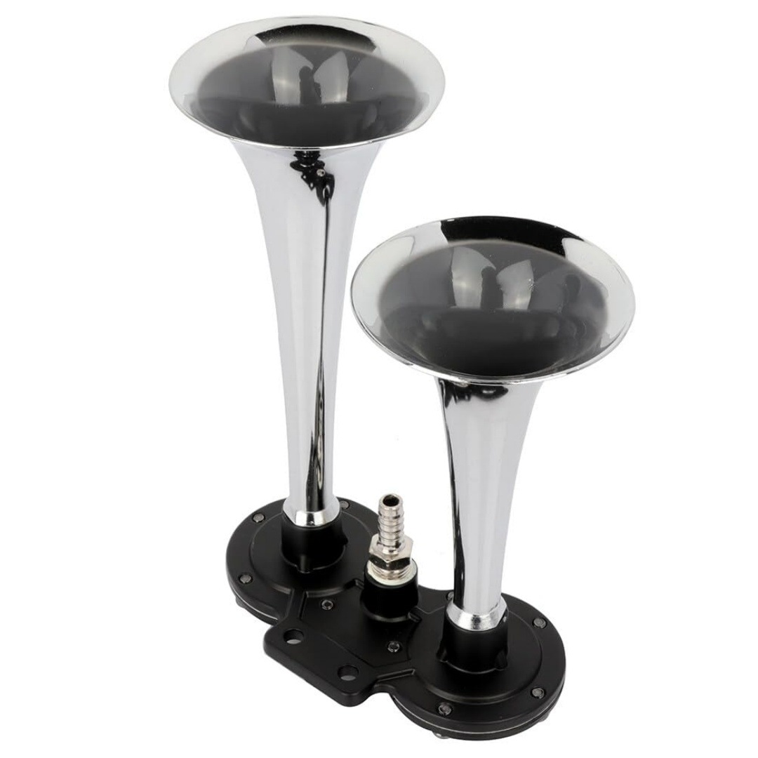 - Complete Kit with Options: Includes a dual trumpet zinc alloy horn and air pump motor. Available in 12V/24V options and various finishes (chrome, black) to match your vehicle’s style and power requirements.