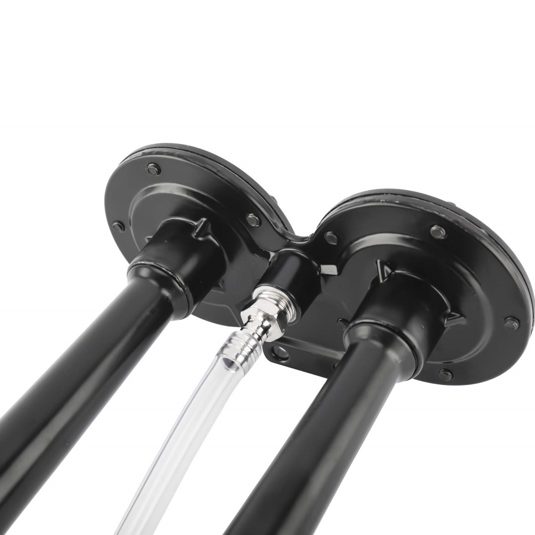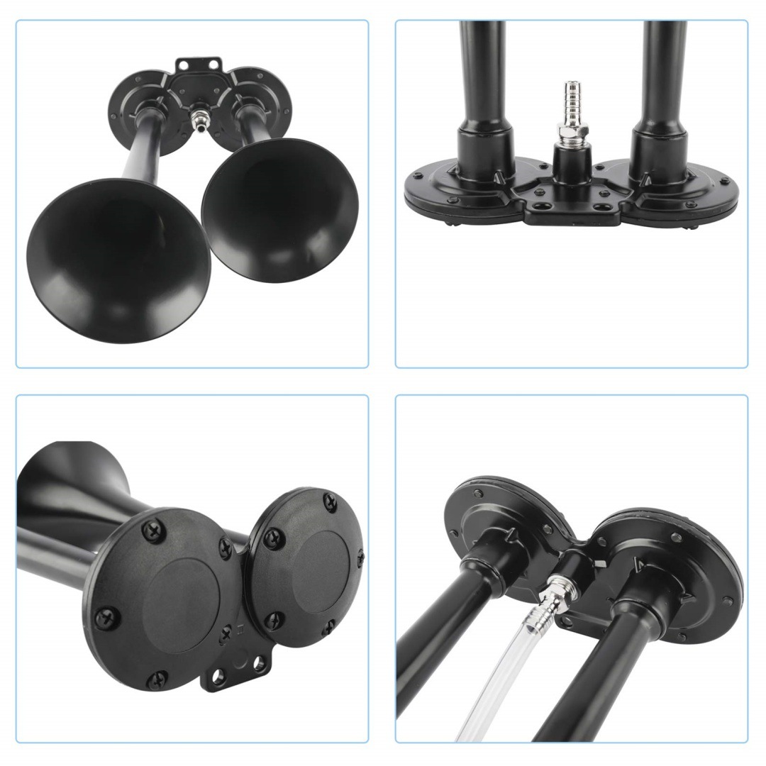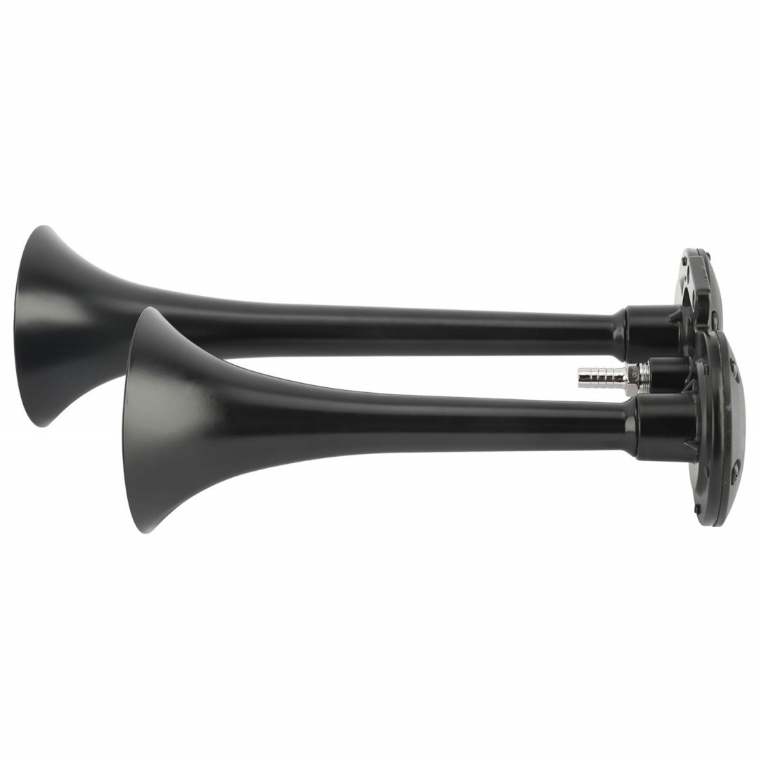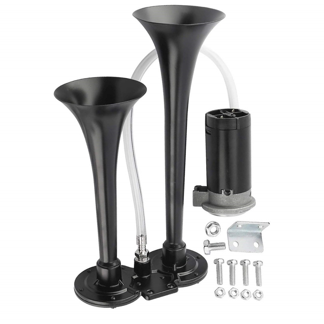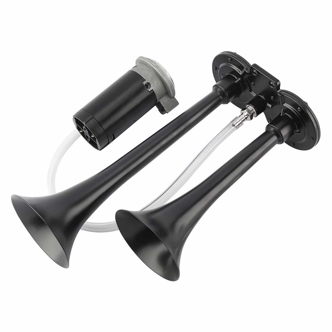 - Complete Kit with Options: Includes a dual trumpet zinc alloy horn and air pump motor. Available in 12V/24V options and various finishes (chrome, black) to match your vehicle’s style and power requirements.