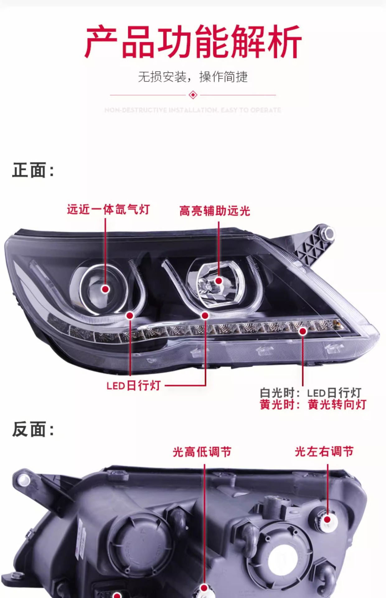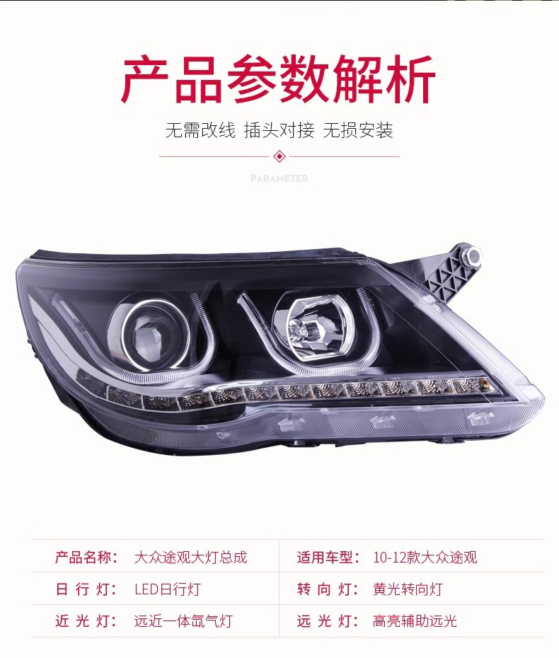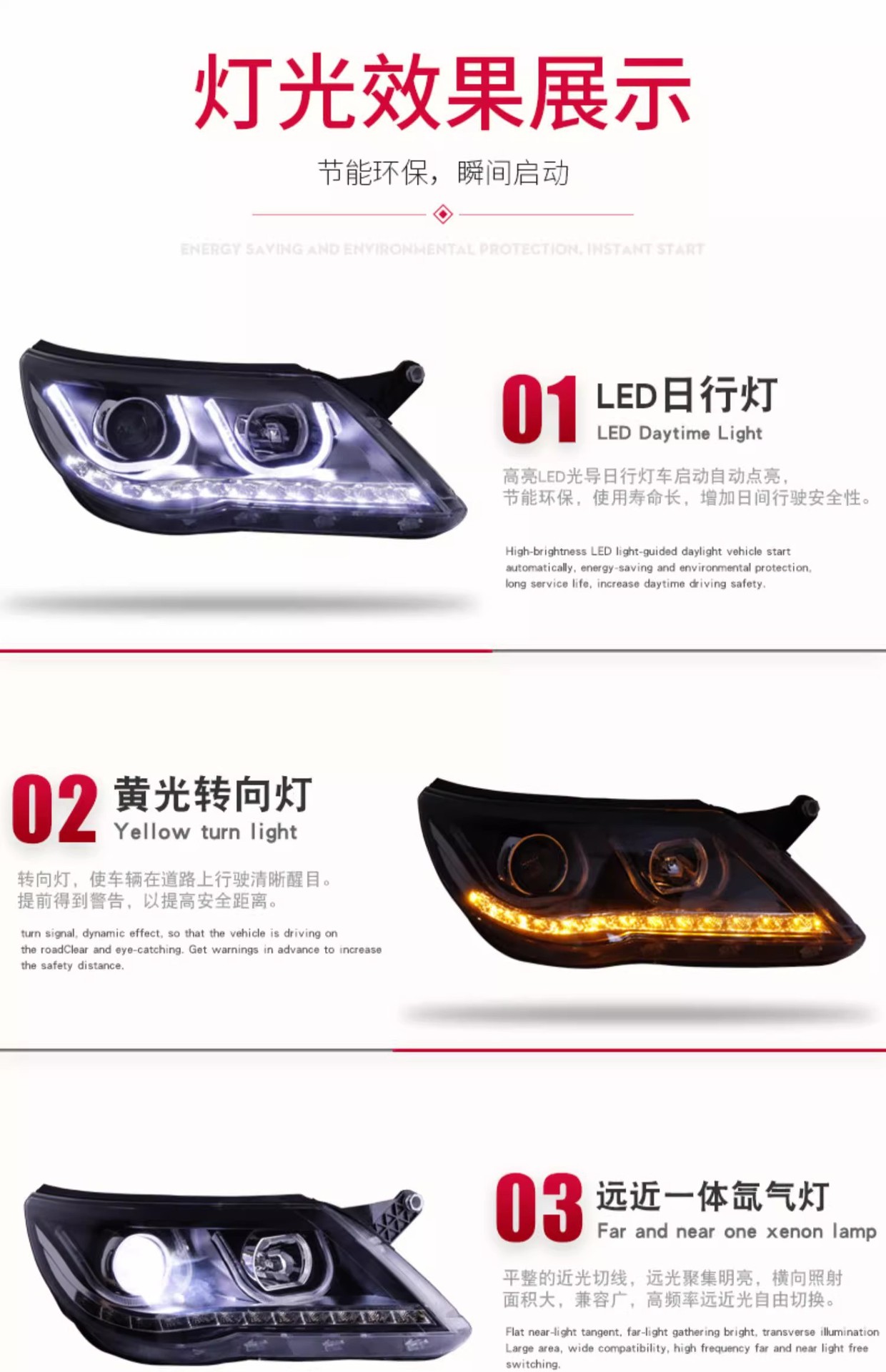 Dual U-shaped LED DRL Projector Xenon Headlight Assembly for Volkswagen Tiguan (2009-2012)