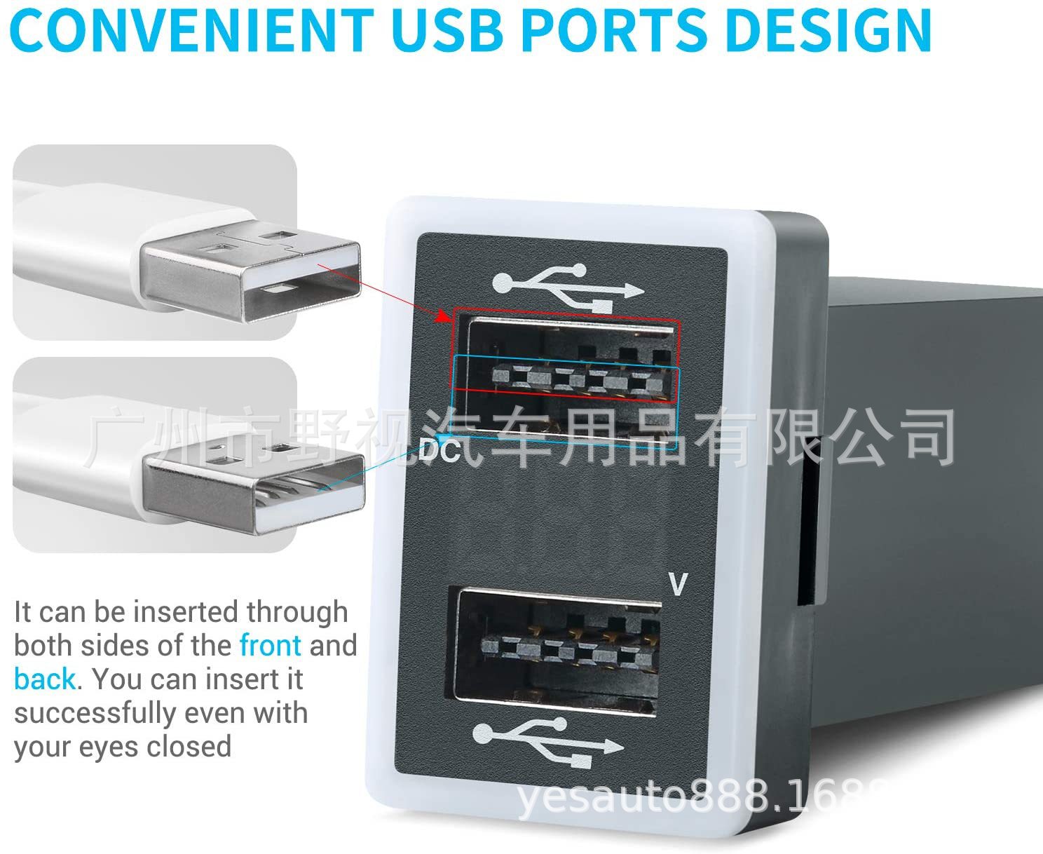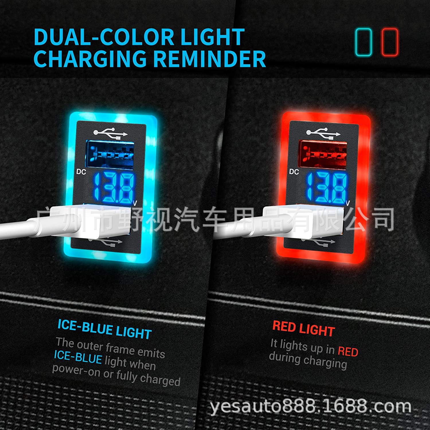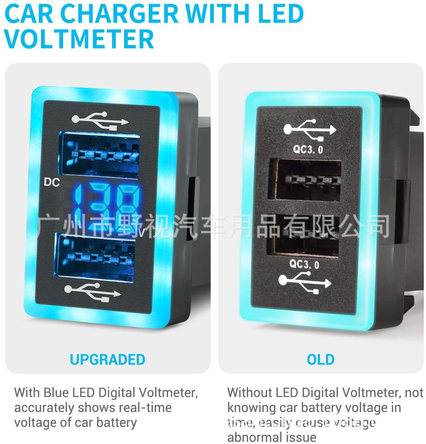 Dual USB Car Charger QC3.0 Fast Charging with Dual-Color LED Voltage Display for New Toyota