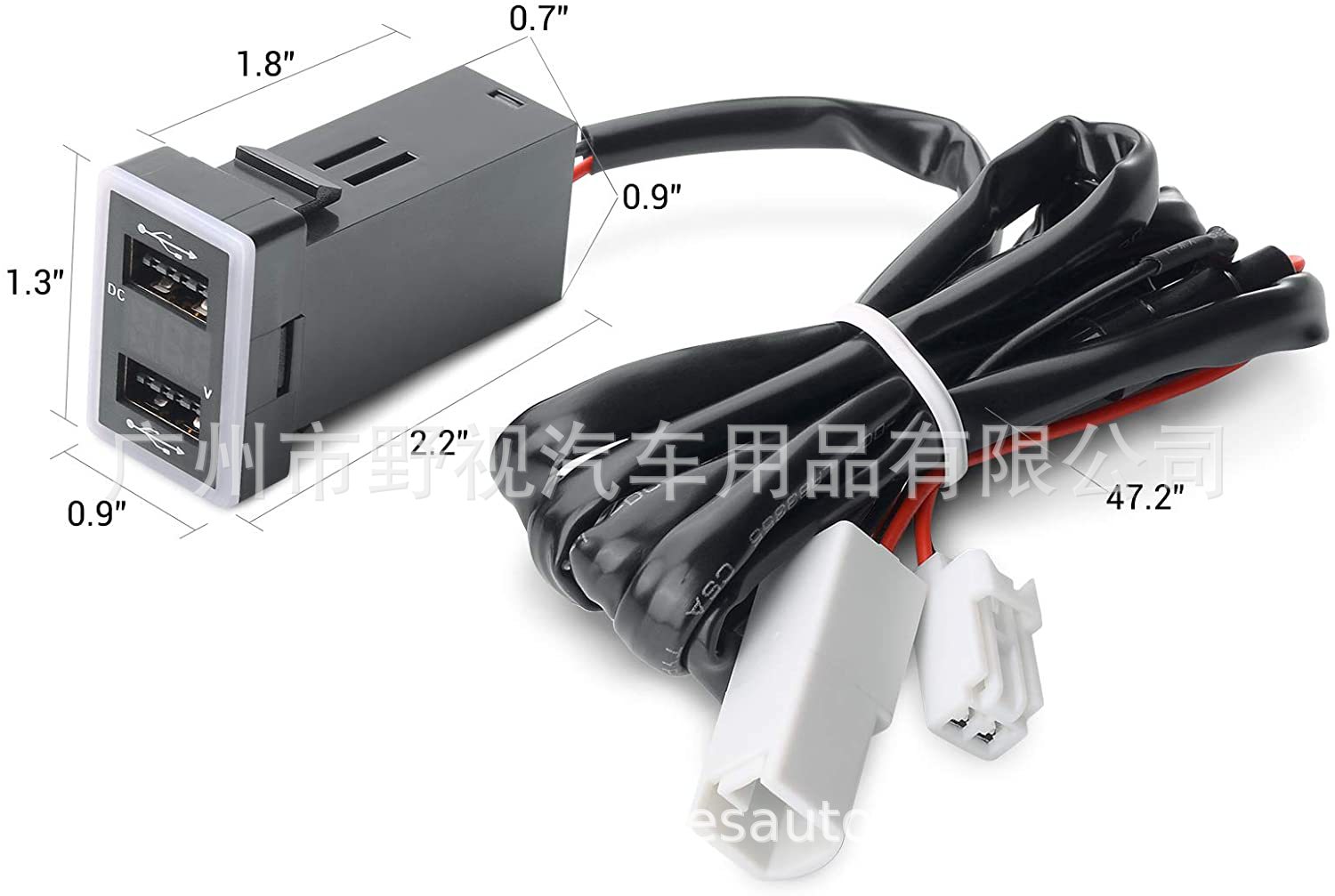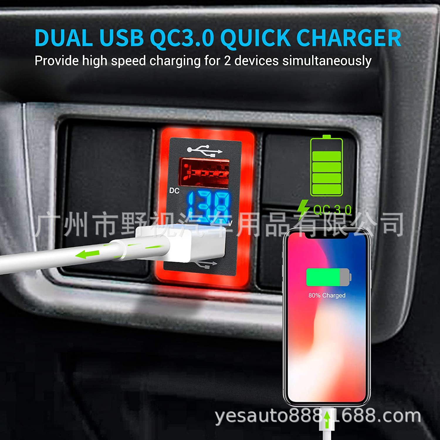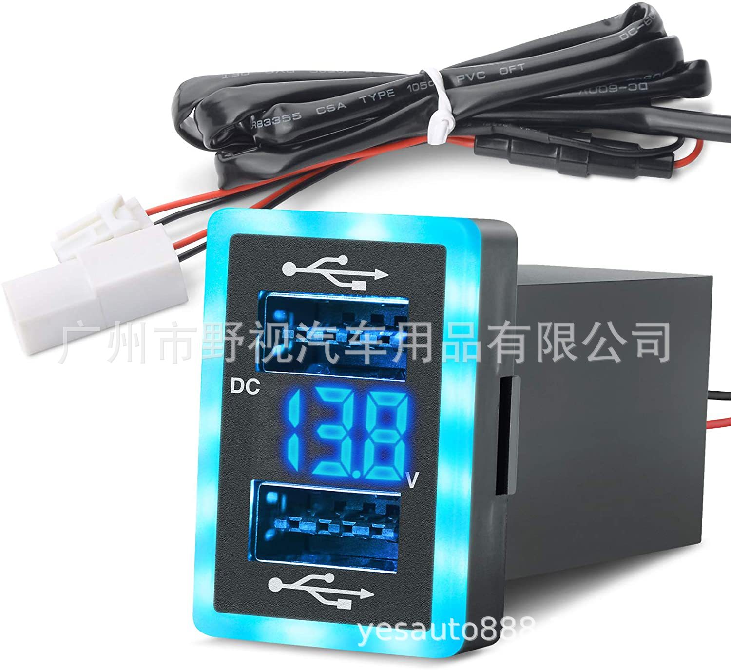Dual USB Car Charger QC3.0 Fast Charging with Dual-Color LED Voltage Display for New Toyota