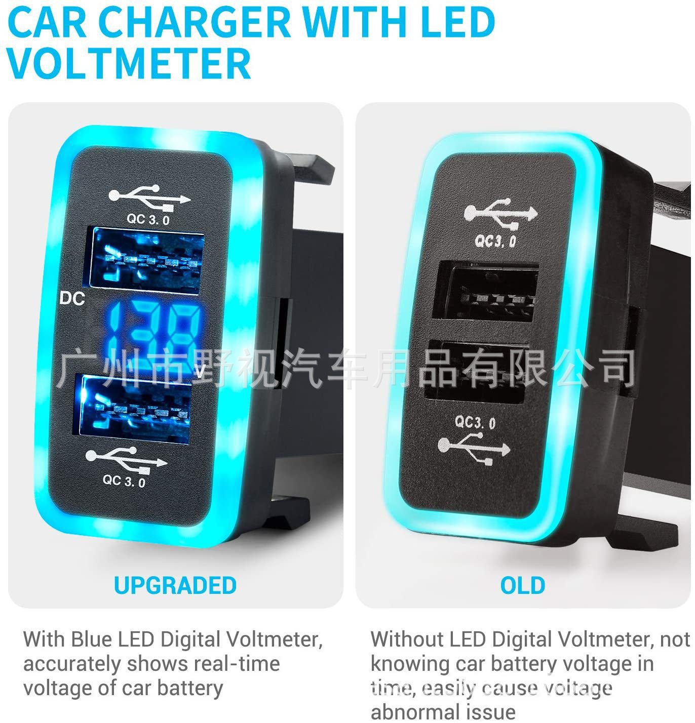 Duel QC3.0 USB Car Charger with Digital Voltmeter for Old Toyota