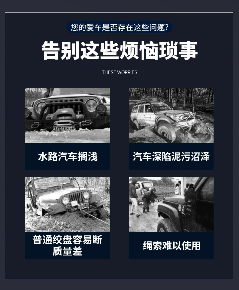 - High-Performance Specifications: Equipped with a 4.8hp/3.6kw motor and 9.1mm*24m steel wire rope, ensuring reliable pull strength and long reach for diverse recovery scenarios.