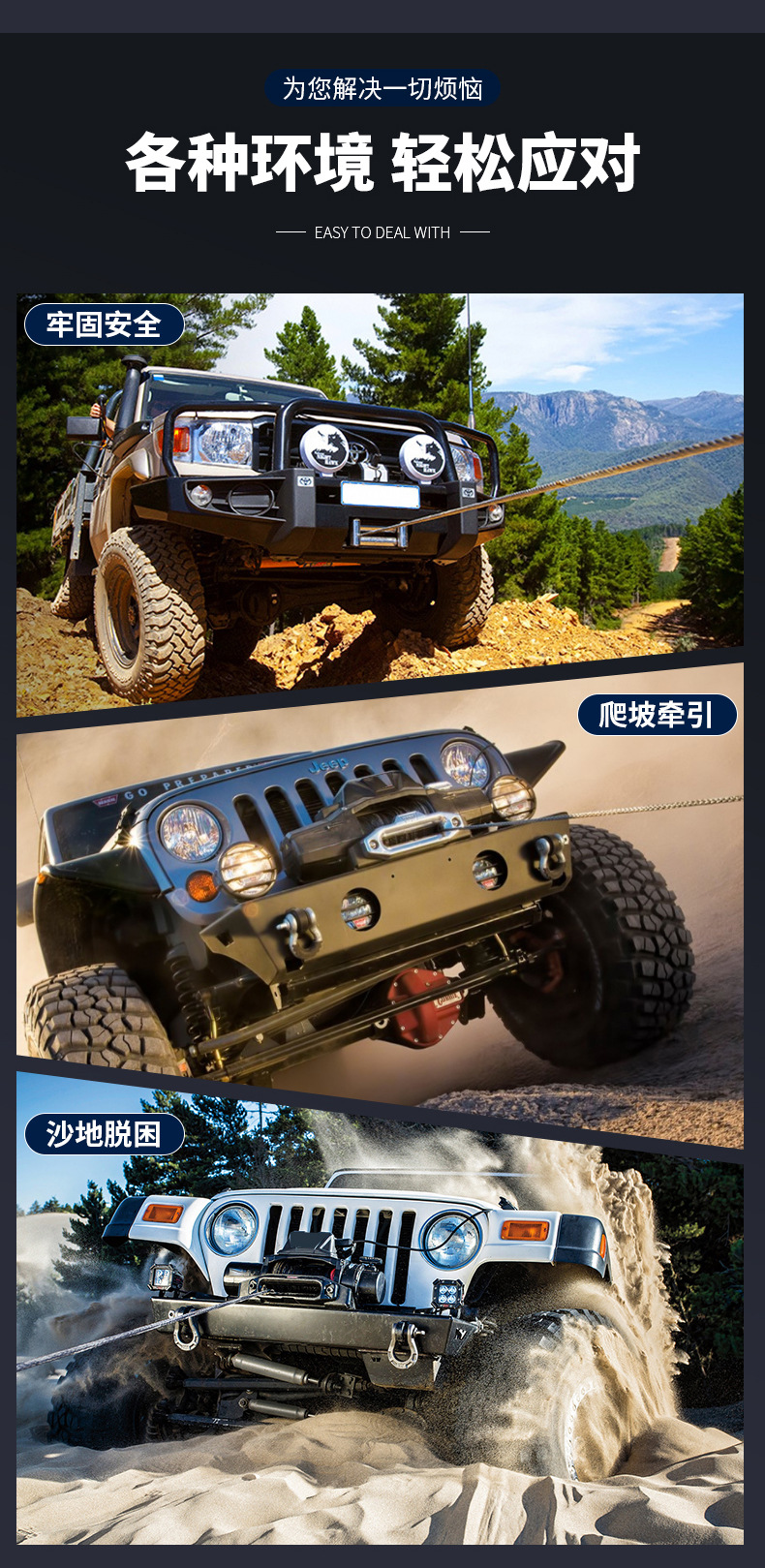 - Reliable Off-Road Recovery: Designed specifically for off-road vehicles, providing reliable and efficient assistance for extricating stuck vehicles from mud, sand, or tough terrain.