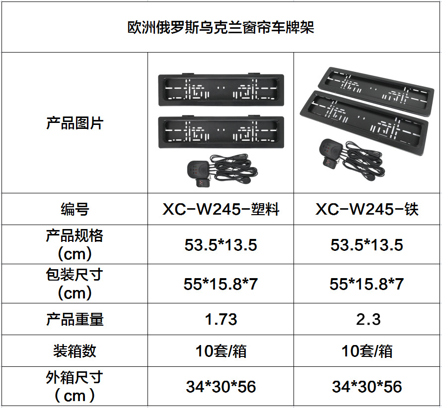 - Package Contents: Includes 1x European Electric License Plate Frame (model XC-W245). A practical solution for securing your license plate with European standards.