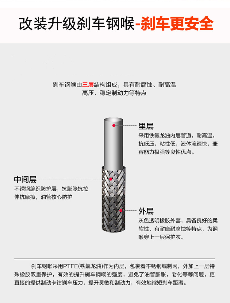 - Improved Braking Performance: Reduces hose expansion under pressure, delivering a firmer pedal feel and improved braking response for safer driving.