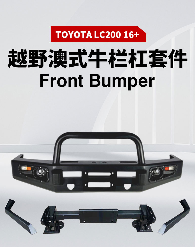 - Aggressive Styling: Featuring a rugged FA design, this front bumper bull bar instantly upgrades your LC200’s aesthetic, giving it a more powerful, off-road ready, and commanding presence.