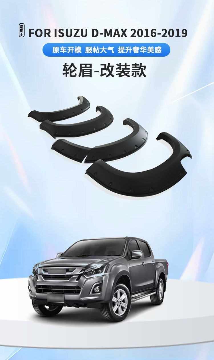 - Direct Fitment: A perfect replacement for your vehicle. Compatible with ISUZU D-MAX 2016-2019 models. Enhances wheel well coverage.