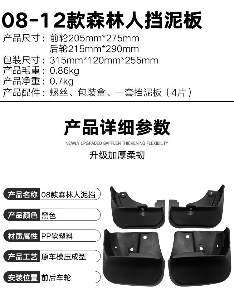 Fender Splash Guards Mud Flaps (PP Soft Plastic) for Subaru Forester 2008-2012
