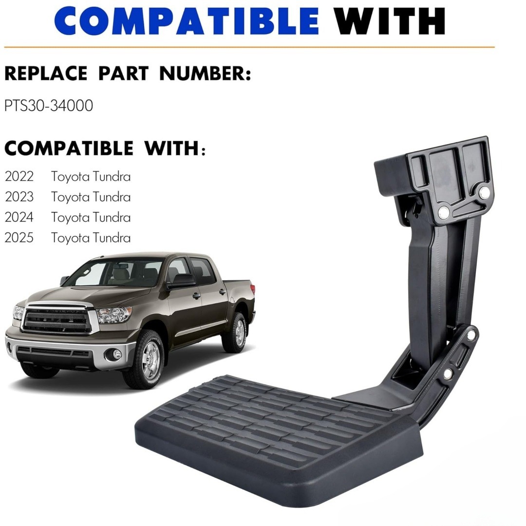 - Package Contents: Includes 1x folding retractable tailgate step for Toyota Tundra (Part Number PTS30-34000, PT392-34231), offering a robust and reliable solution for improved cargo access.