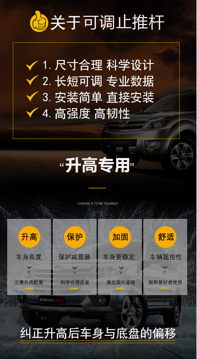 - Adjustable Design for Customization: Features a fully adjustable length, allowing for precise alignment of the front axle, correcting geometry after suspension lifts, and accommodating various modifications.