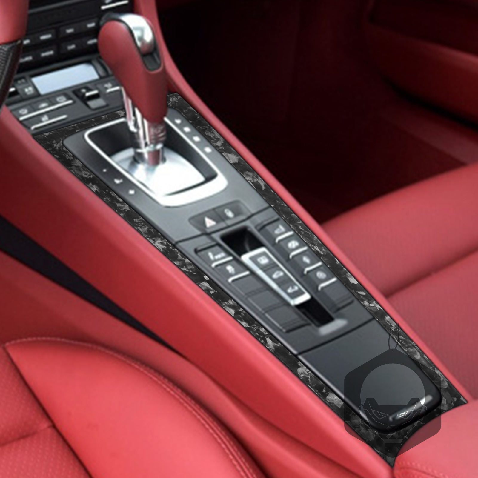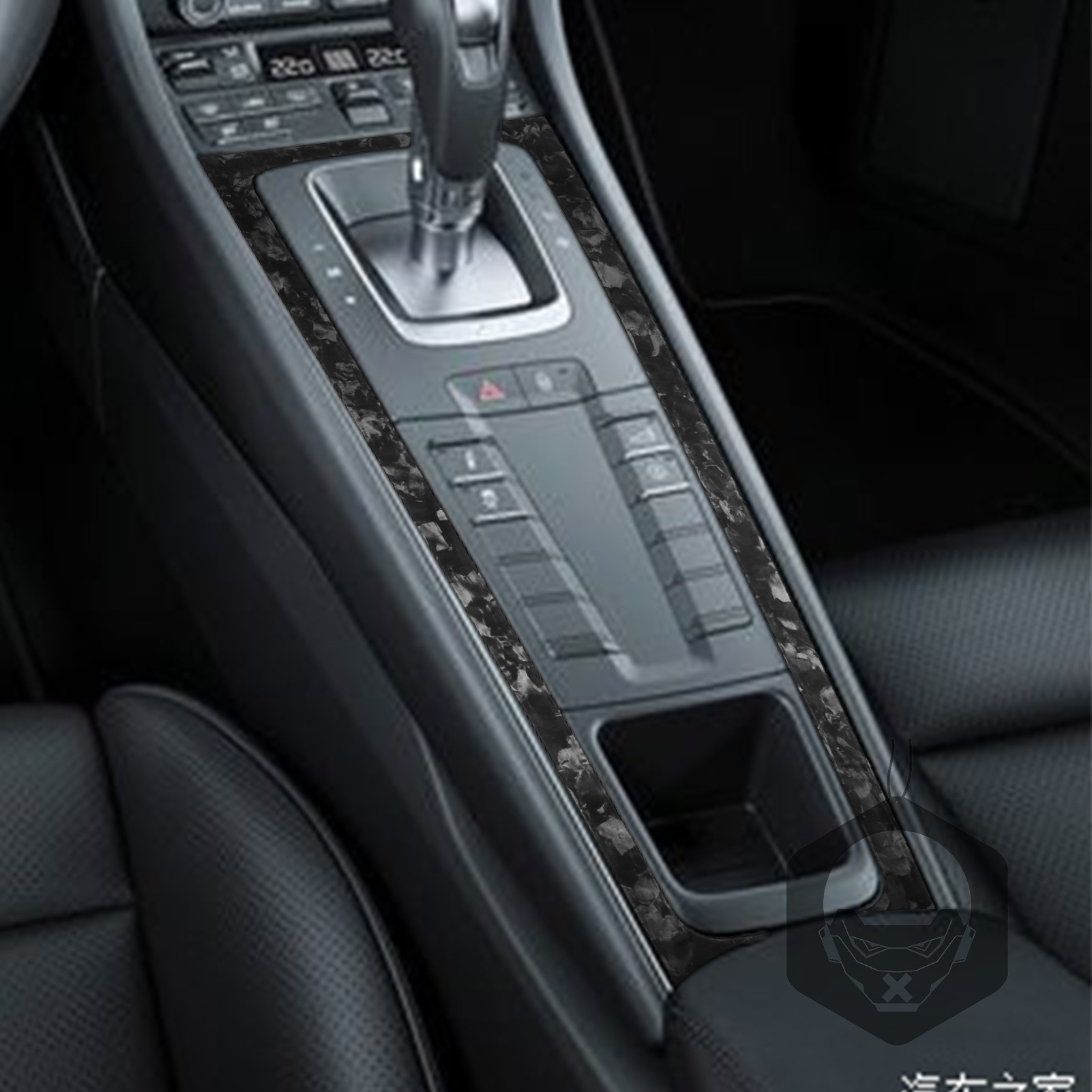 Forged Pattern Carbon Fiber Central Control Gear Shift Panel Trim for Porsche 718 911 Accessories
