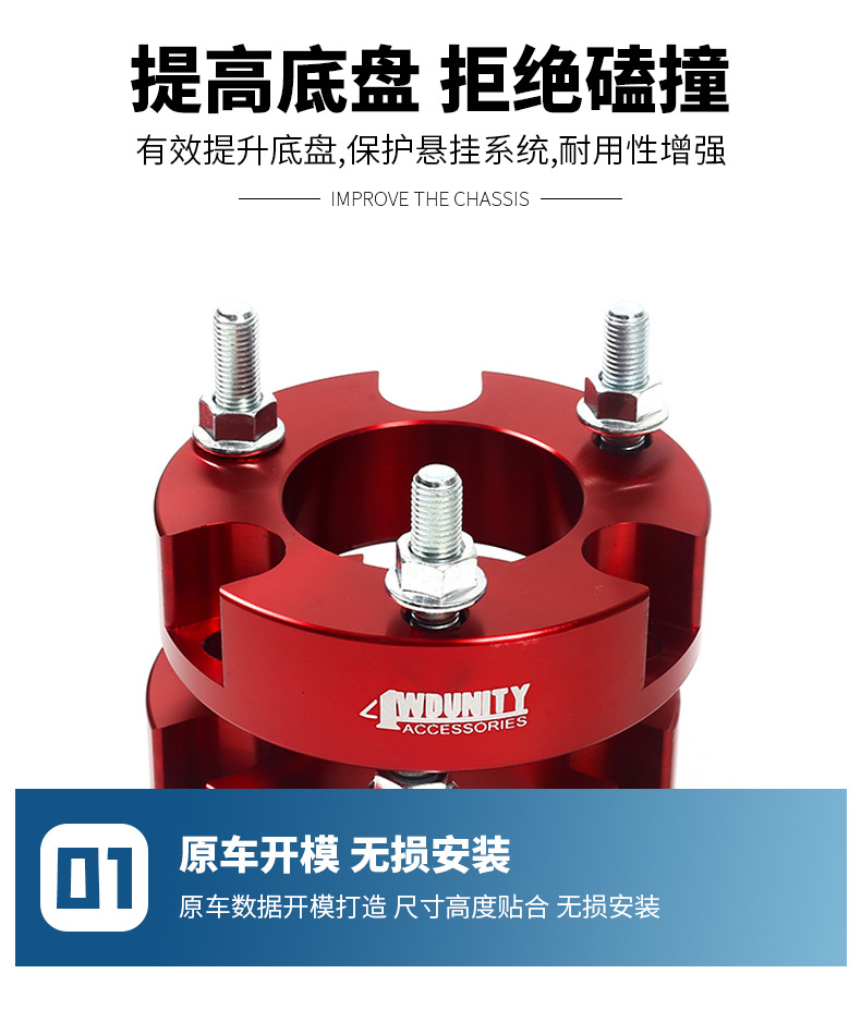 - Package Contents: Includes a set of 2 front lift spacers, allowing for quick and effective suspension modification.