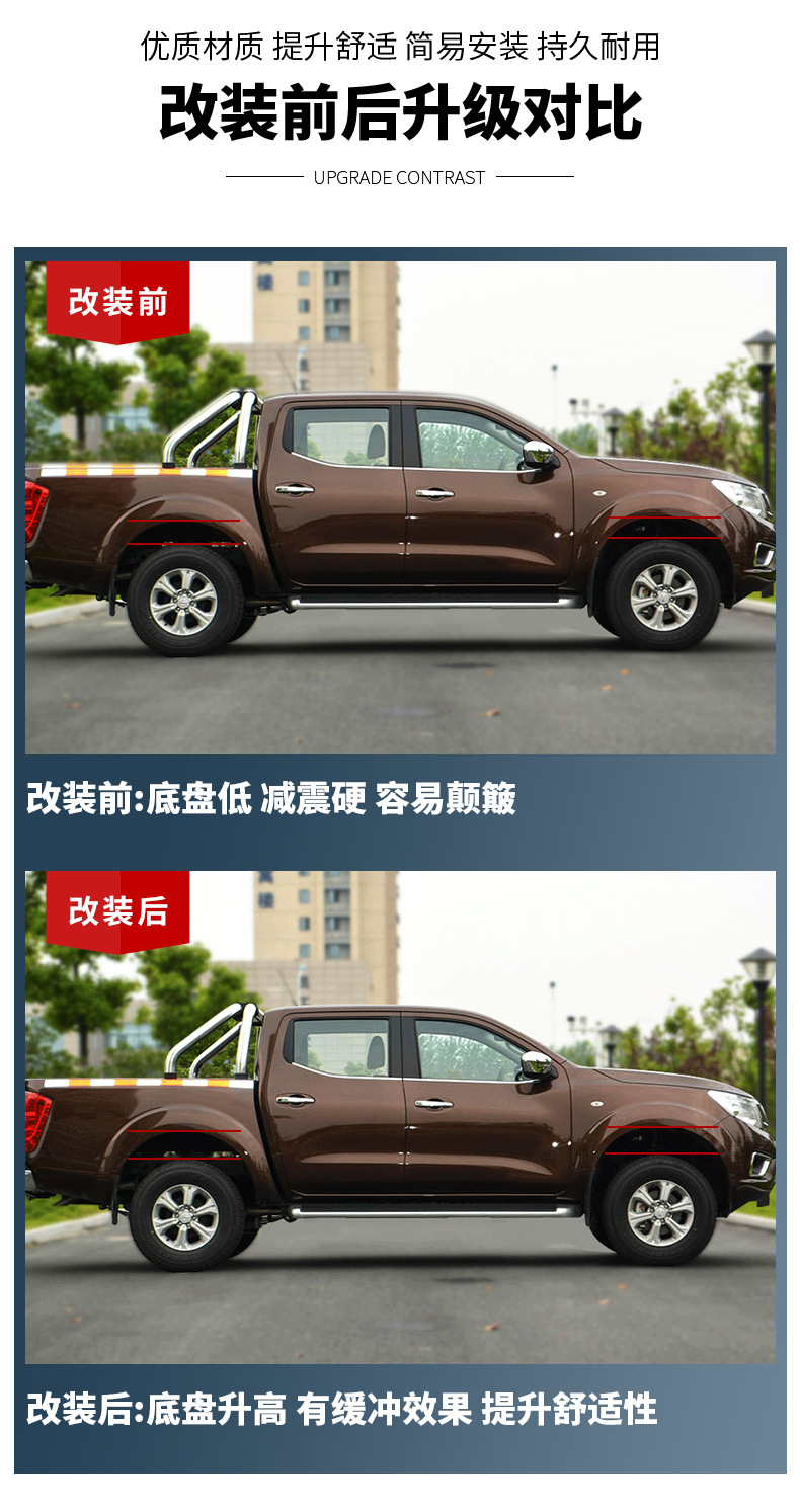 - Precise Fitment: Specifically designed for Nissan Navara NP300 models to provide a 2-inch front lift.