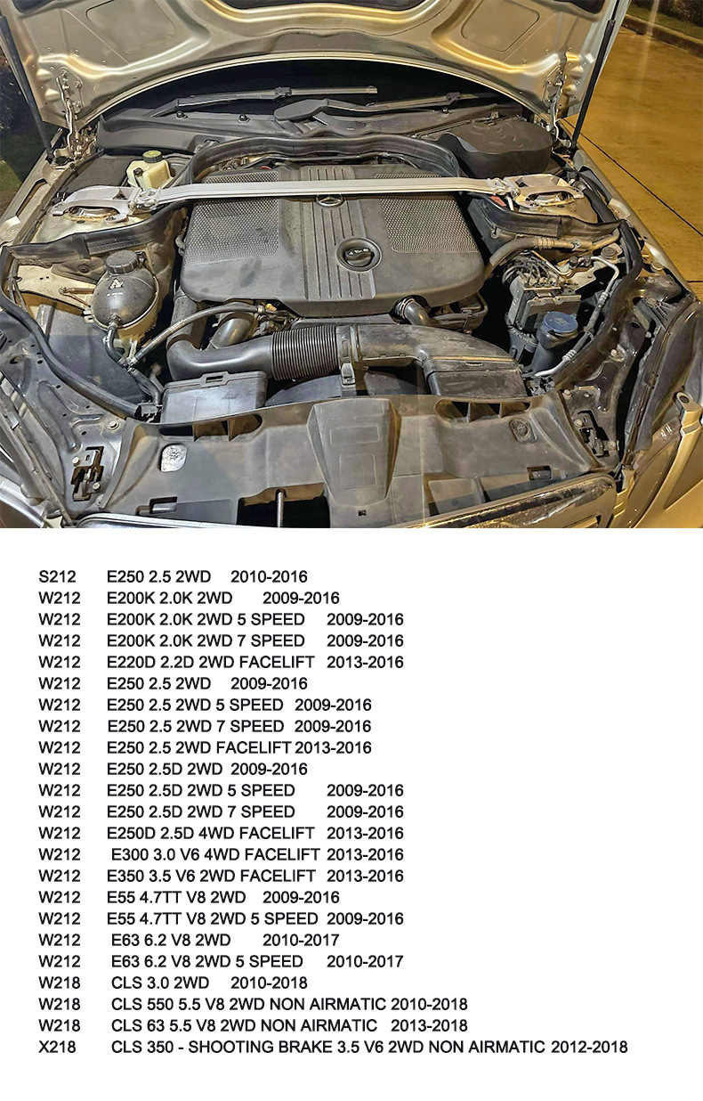 - Easy Bolt-On Installation: Designed for a straightforward, direct bolt-on process with no drilling or modification required. Package includes 1x Front Engine Strut Bar for Benz W212 W218.