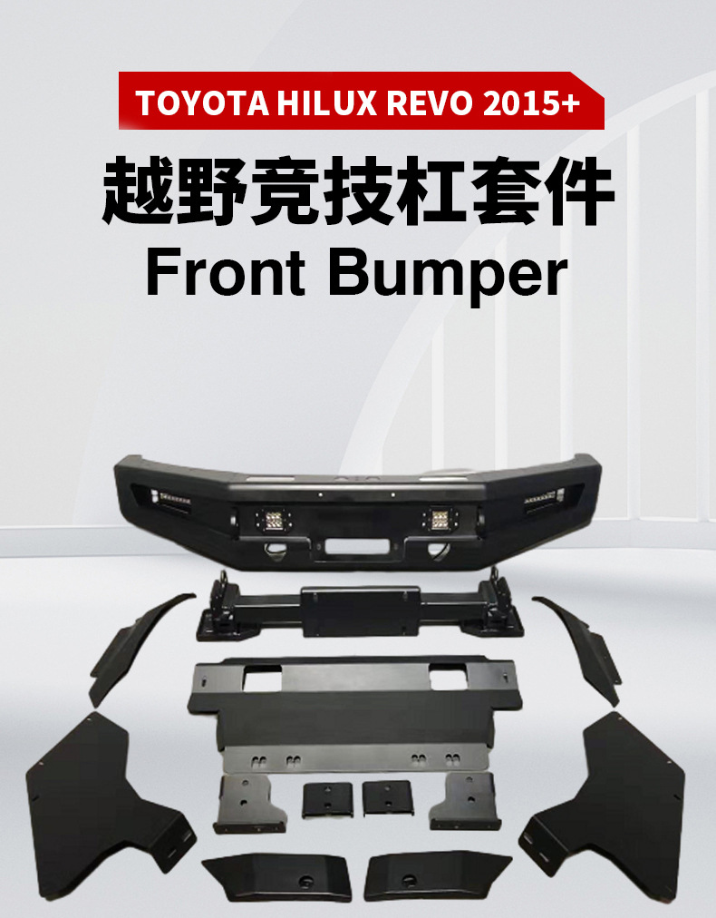 Front Bumper FF Style Aggressive Bull Bar with LED Lights for Toyota Hilux Revo 2015+