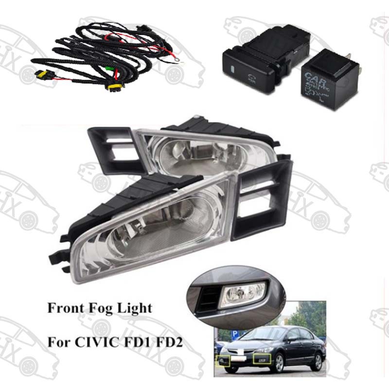 Front Bumper Fog Lights Kit with Wiring Harness and Switch for Honda Civic FD1 FD2 2006 2007 2008