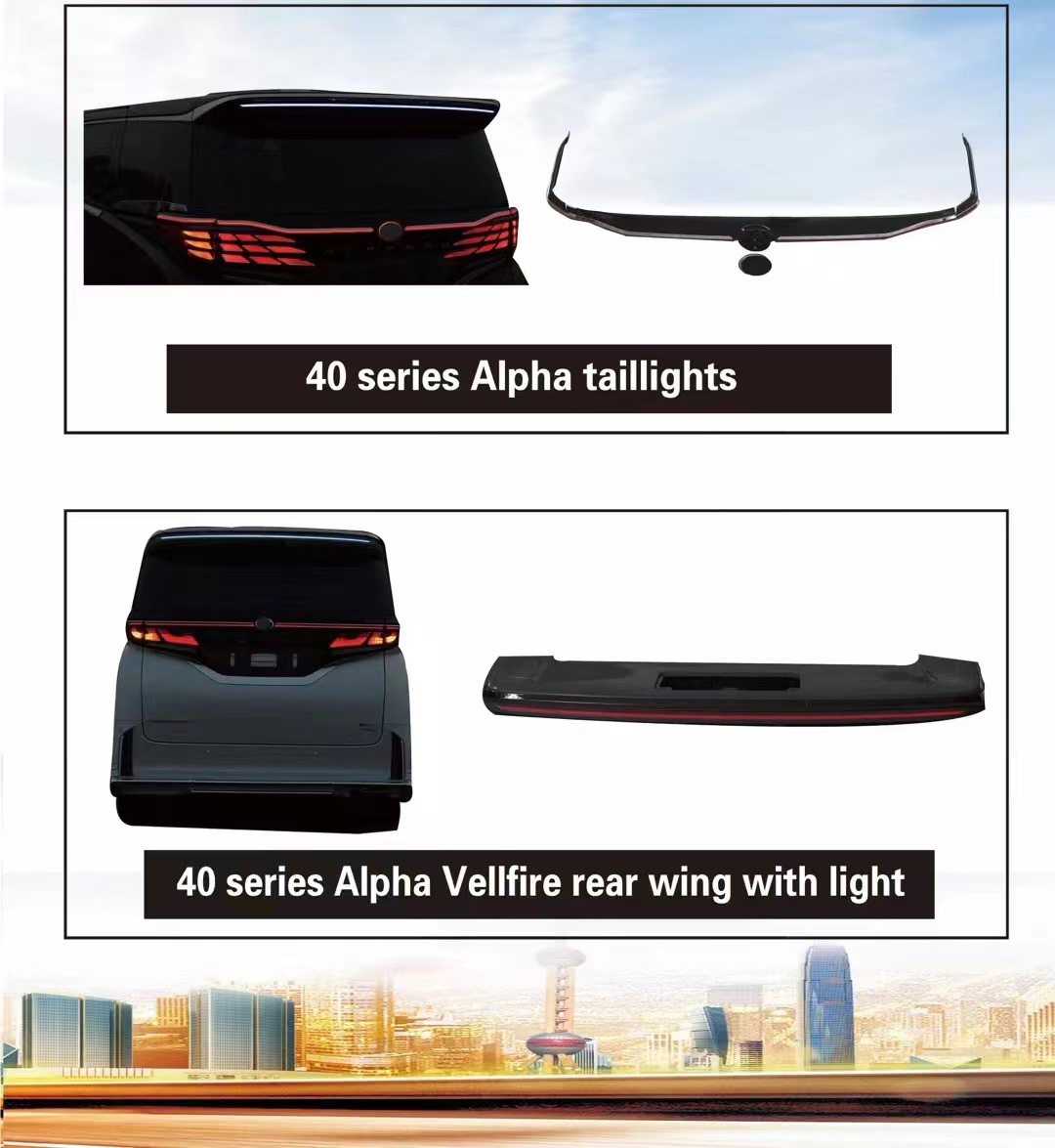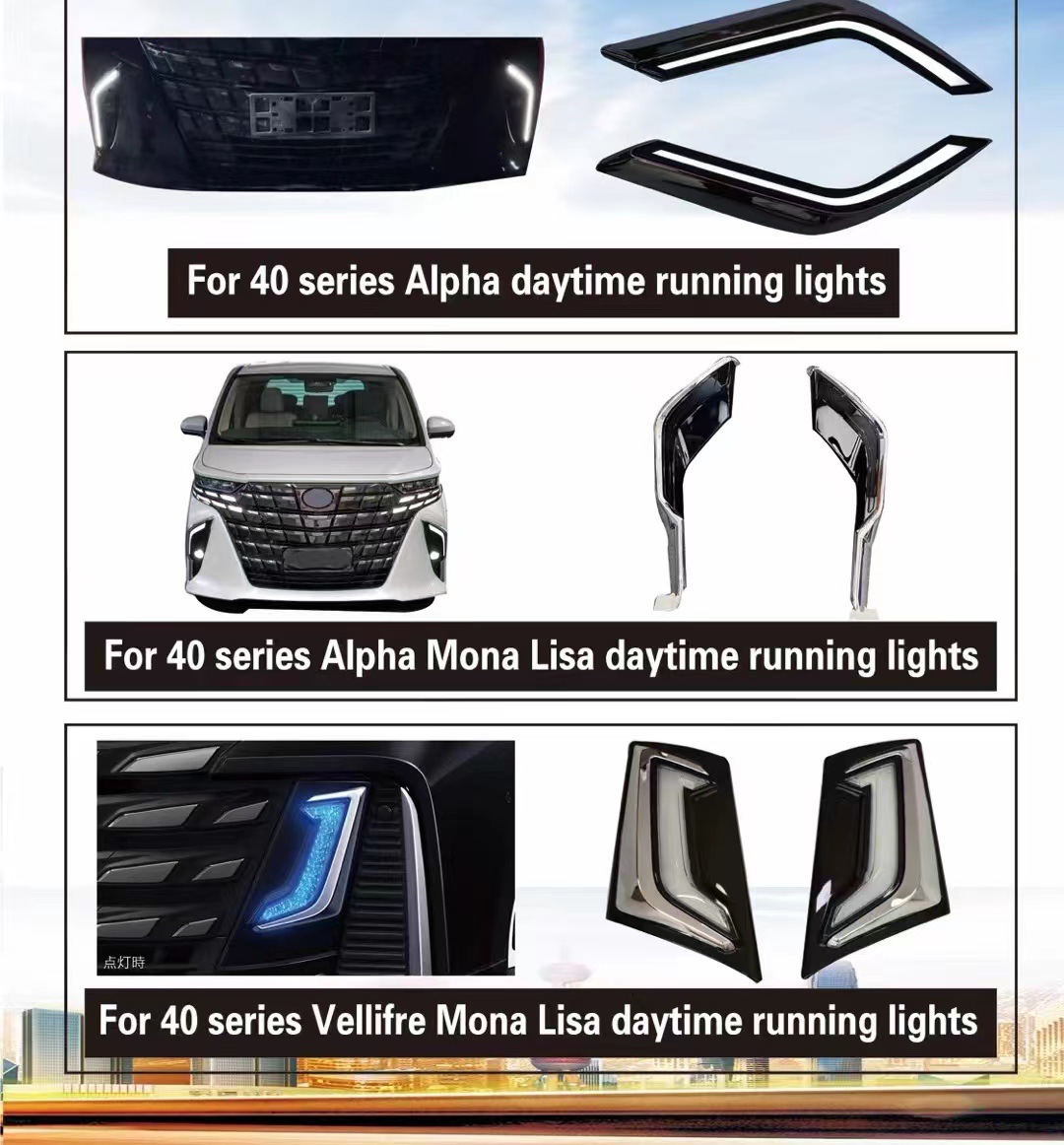 Front Bumper Grille Led Daytime Running Lights Rear Spoiler Bumper Kits for Toyota Alphard 40 Series Vellfire 2024