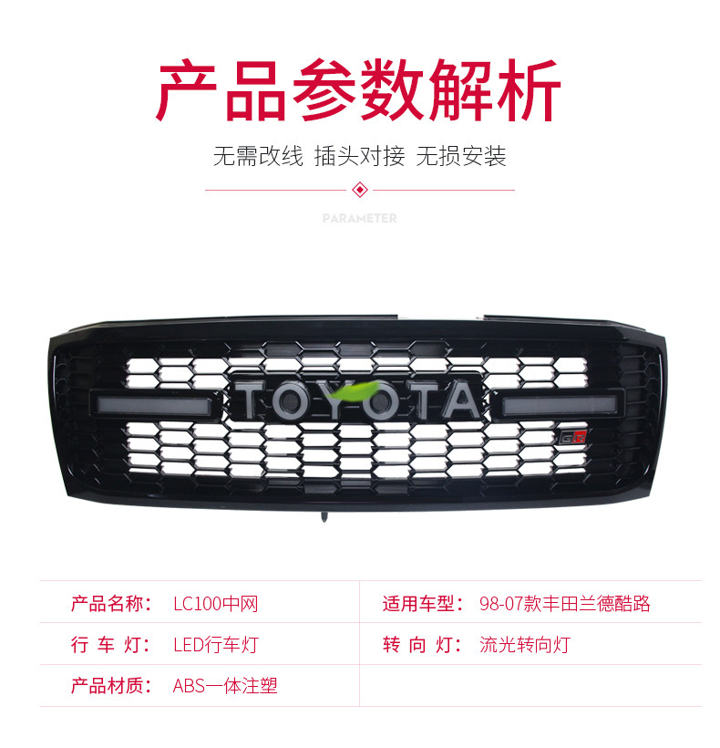 - Performance-Driven Design: Features integrated LED lights that enhance visibility and give your Land Cruiser LC100 a modern, custom look.