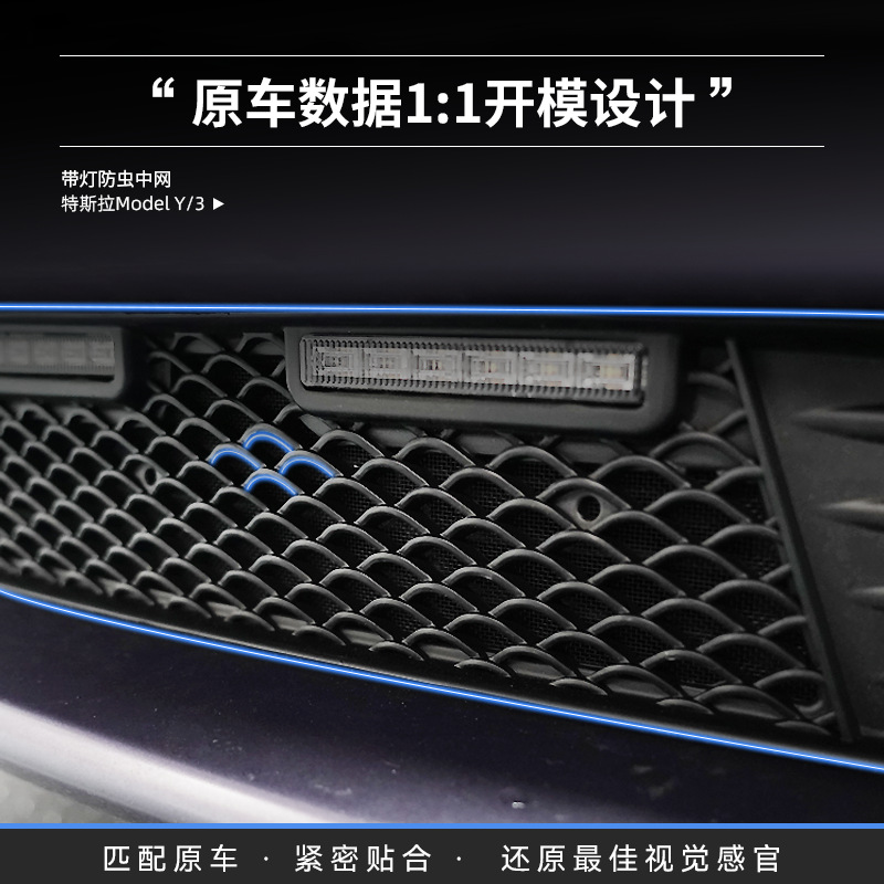 Front Bumper Insect Mesh Grille with LED Lights for Tesla Model Y Model 3