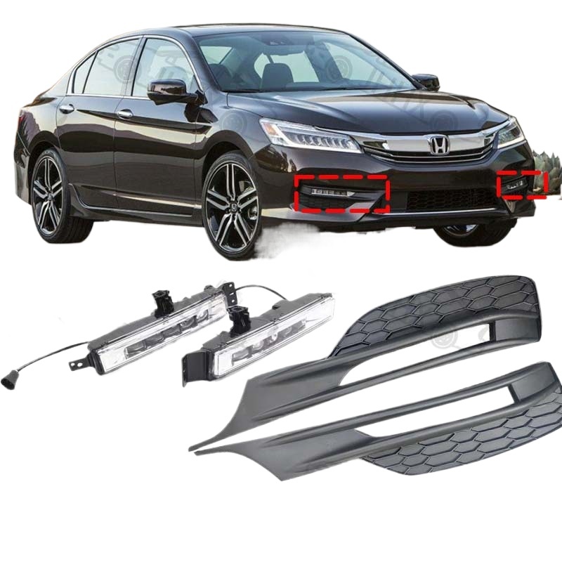 Front Bumper LED Fog Light Fog Lamp Bezel with Daytime Running Light for Honda Accord US Version 2016-2017