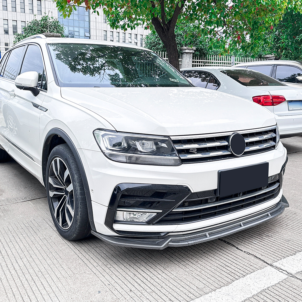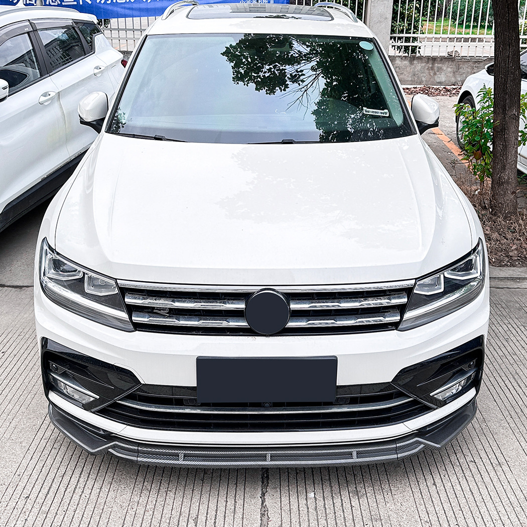 Front Bumper Spoiler Lip Diffuser ABS Piano Black Carbon Fiber Texture for VW Tiguan MK2 Pre-facelift R-Line 2017-2020