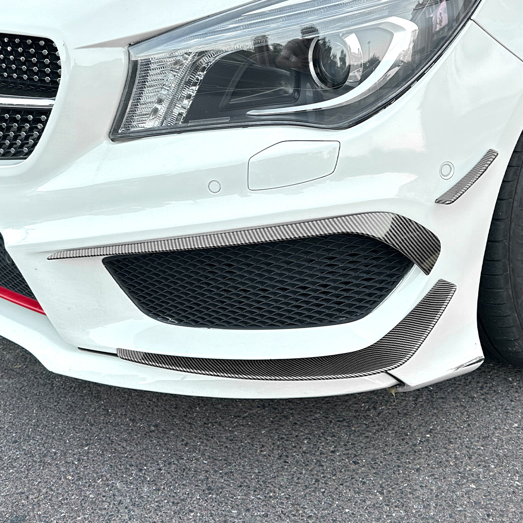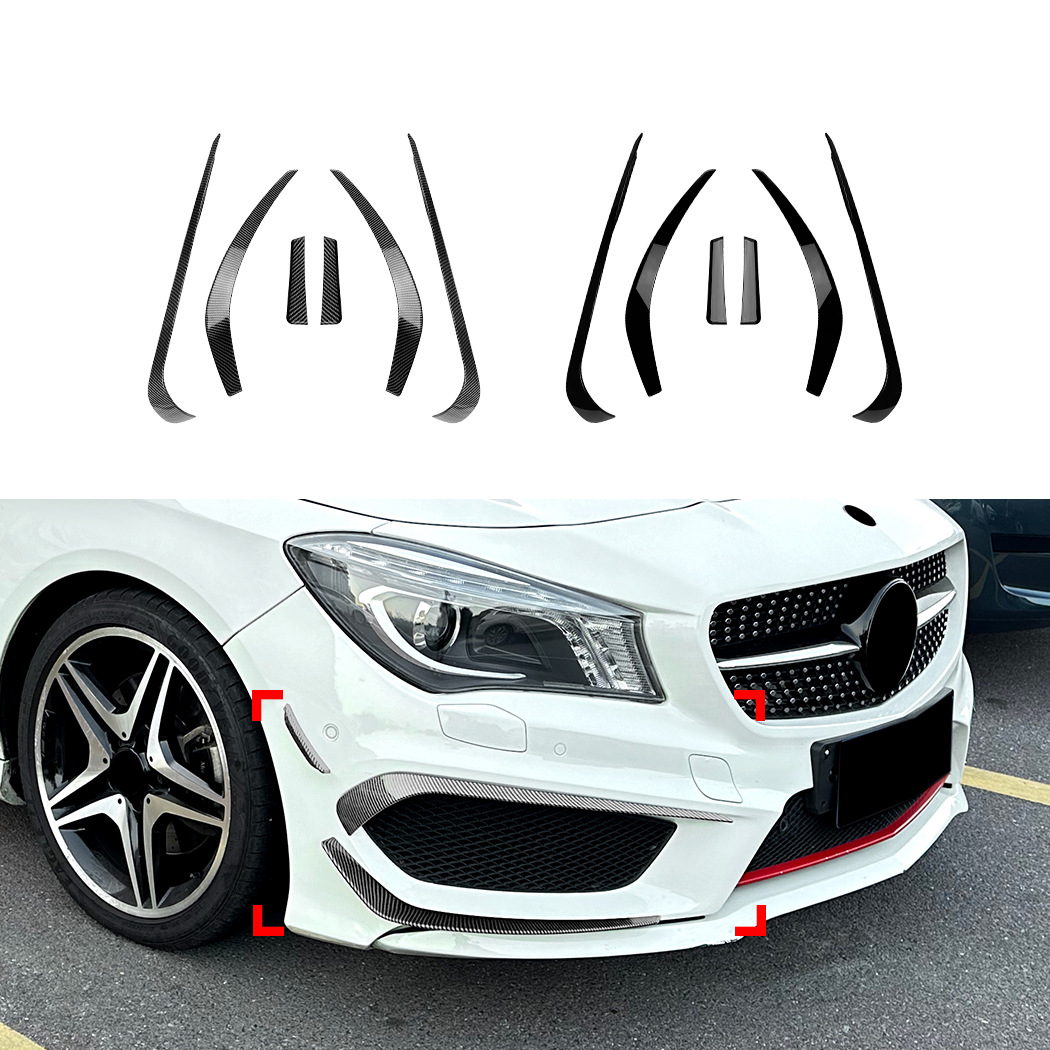- Enhanced Aesthetic Appeal: Available in sleek Piano Black or dynamic Carbon Fiber Texture finish, these front bumper wind knife trims add a racing-inspired, aggressive and sporty look to your CLA, significantly enhancing its visual presence.