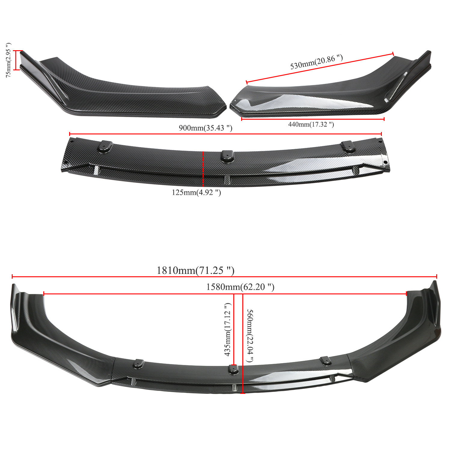 Front Carbon Fiber Texture Universal 3-Piece Car Front Bumper Lip Spoiler Splitter