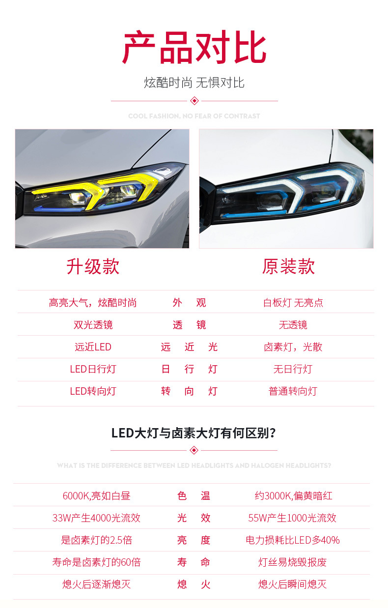 - Enhanced Styling: Upgrade your BMW 3 Series G20 G28 with a sleek, contemporary headlight design that mimics the M3 style, giving your vehicle a refreshed and aggressive look while improving its overall appeal.