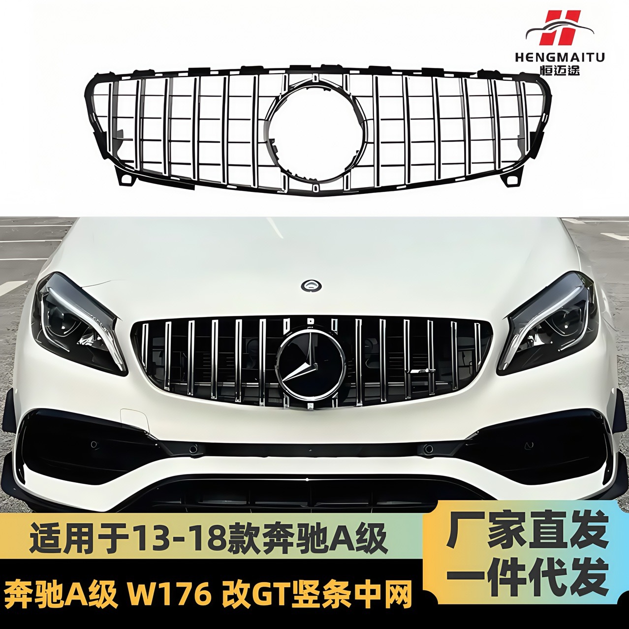 • Aggressive AMG GT Panamericana Style: Transform your A-Class with the iconic Panamericana GT-R design, featuring bold vertical slats and a sleek gloss black finish. This grille instantly elevates your car’s presence, adding a sporty and aggressive AMG-inspired look.