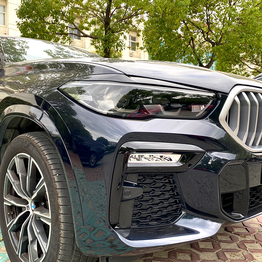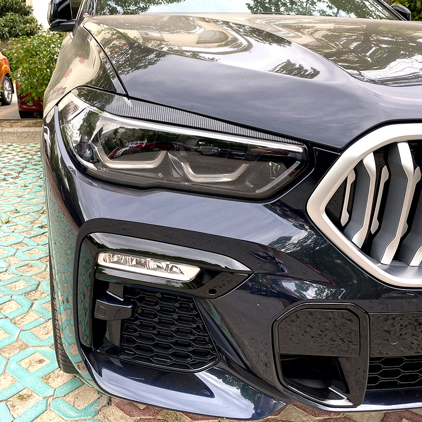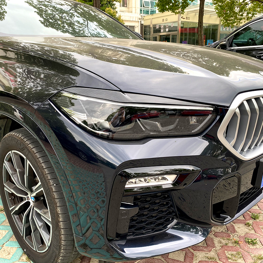 Front Headlight Eyebrow Eyelid Trim Sticker ABS Piano Black Carbon Fiber for BMW X5 G05 X6 G06 2019-2023