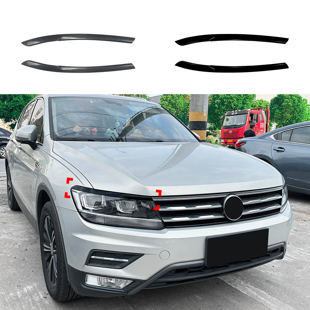 Front Headlight Headlamp Eyebrow Eyelid Trim Sticker ABS Piano Black Carbon Fiber Pattern for Volkswagen Tiguan MK2 2017-2020