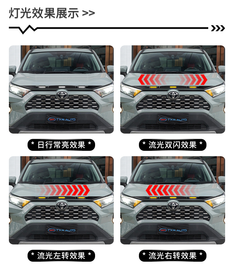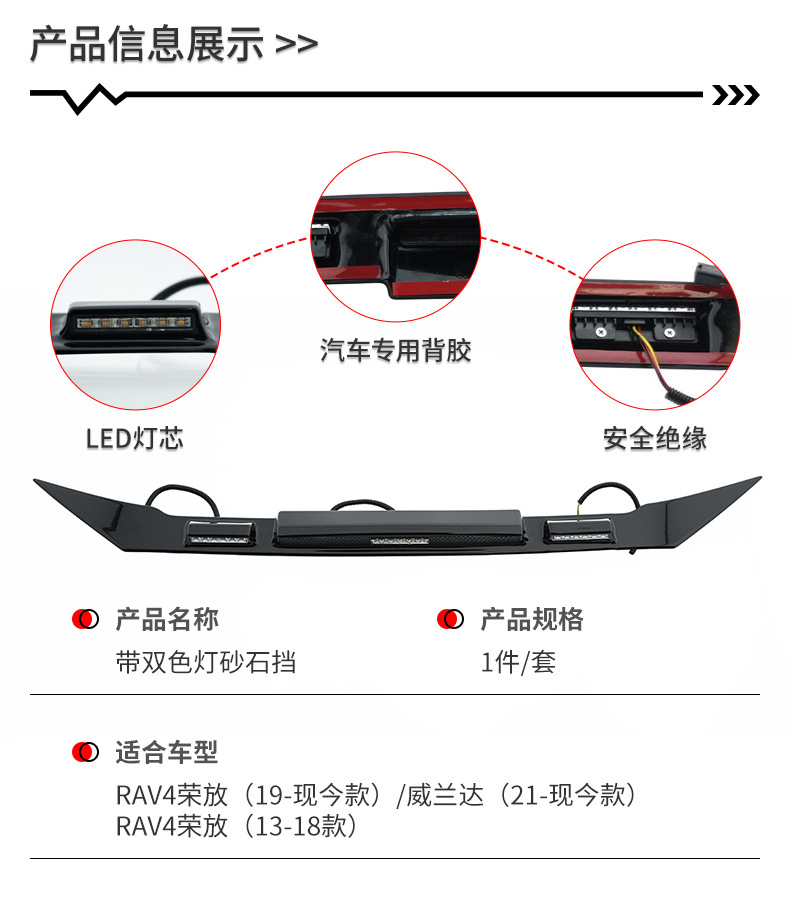 - Performance-Driven Design: Features integrated dual-color 流光 LED light bar as shown, enhancing visibility and adding a modern aesthetic to your vehicle.
