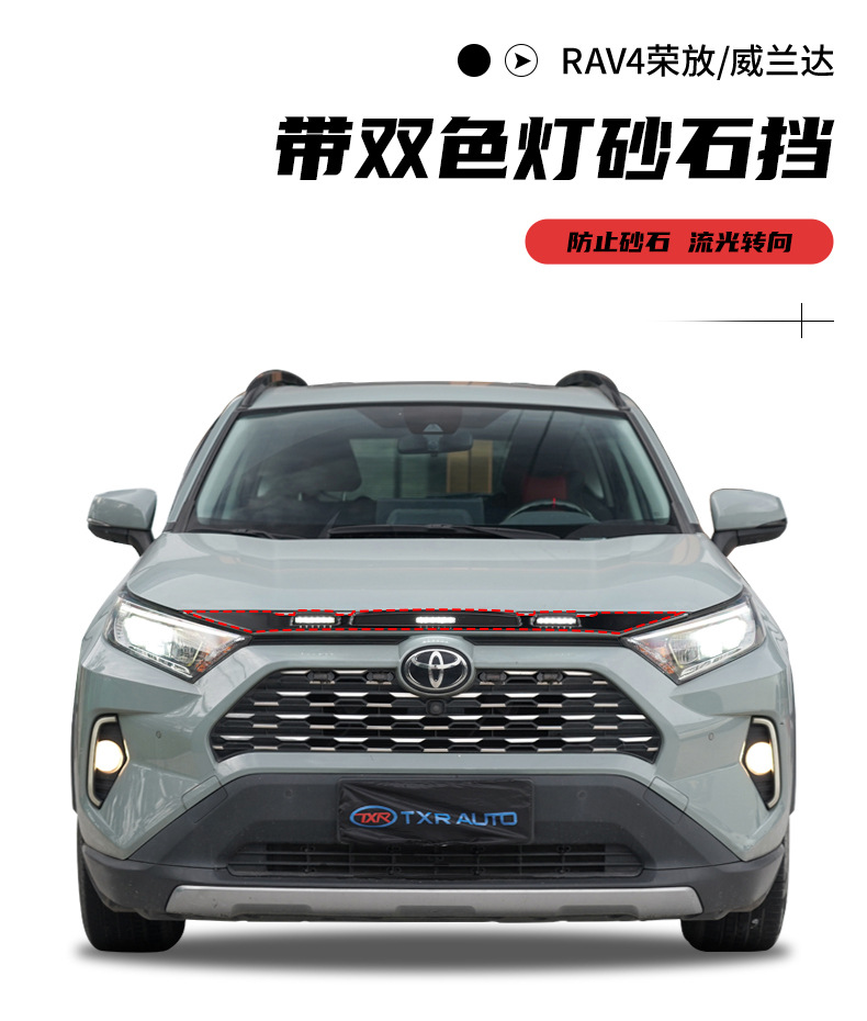 Front Hood Grill Dual-Color 流光 LED Light Bar with Sandstone Guard for Toyota RAV4荣放 & Wildlander