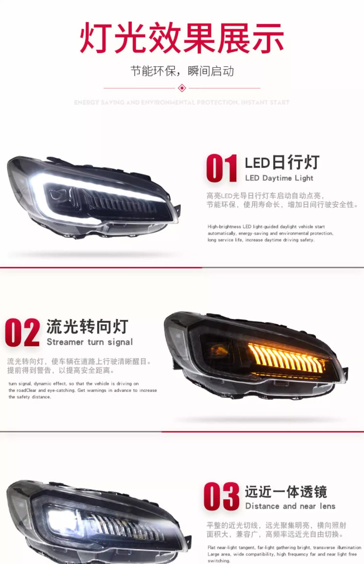 - Enhanced Visibility & Style: Features integrated LED daytime running lights and dynamic flowing turn signals, significantly improving road visibility while adding a modern, stylish upgrade to your vehicle’s aesthetics.