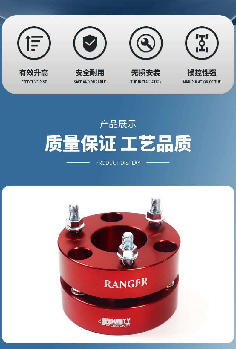 - Enhanced Vehicle Aesthetics: Elevate the look of your Ford Ranger with a 2-inch front lift, giving it a more aggressive, commanding presence. The red finish adds a subtle, custom touch, distinguishing your vehicle from the rest.