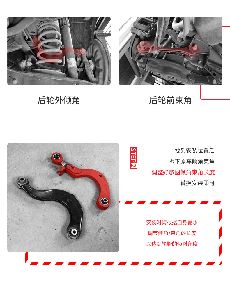 - Enhanced Adjustability & Performance: Features an adjustable rear camber and toe design, allowing for precise customization of your suspension settings. This provides improved handling, stability, and tire wear uniformity for an optimized driving experience.