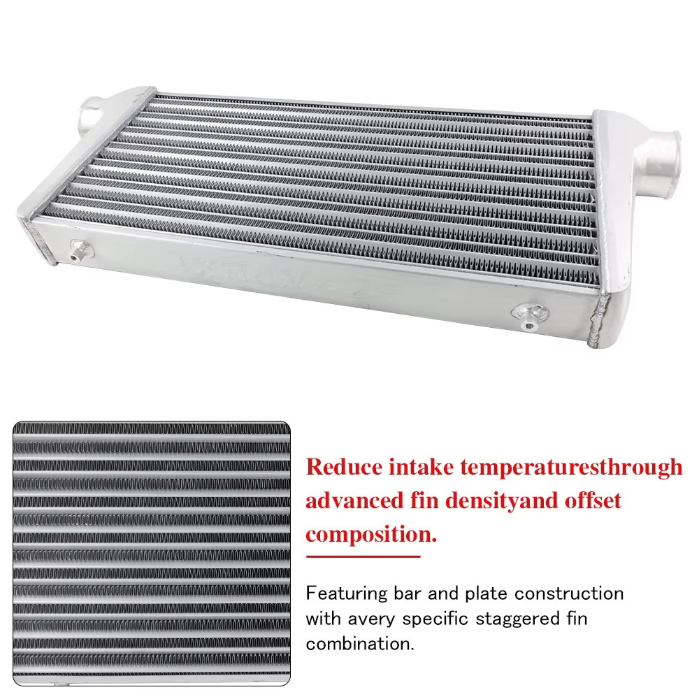 • Premium Aluminum Construction: Crafted from high-grade aluminum, this intercooler ensures superior heat dissipation and remarkable durability, resisting corrosion and maintaining optimal performance under extreme conditions.