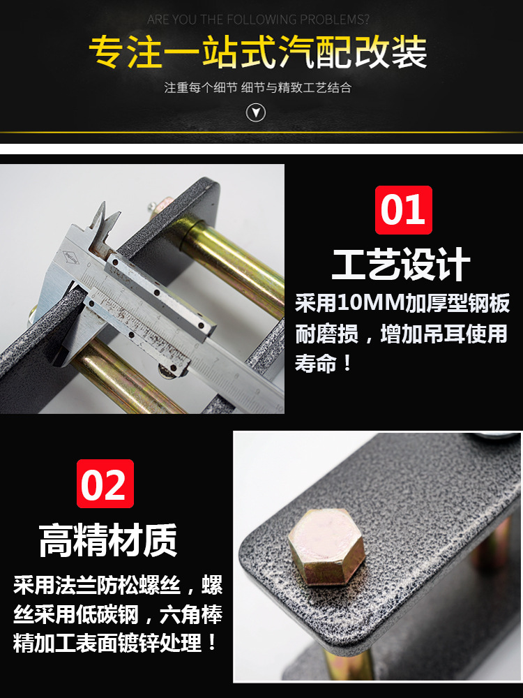 - Complete Lift Solution: Includes front lift spacers and rear lift shackles designed to work seamlessly with existing shock absorbers, providing a balanced and effective suspension upgrade.